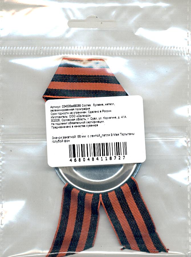 | | 9 МАЯ (ДЕНЬ ПОБЕДЫ) Значок с георгиевской лентой металлический ОРЛ закатной 56мм Тюльпаны (п/упаковка с европодвесом)  Размер значка с георгиевской лентой 12*5,6*0,6 см Значок на 9 мая с георгиевской лентой выполнена из очень качественного, плотного материала. Все детали на Георгиевской ленте выполнены аккуратно, смотрятся потрясающе. В период Великой Отечественной войны полоски на ленте воспринимали как цвета пороха и огня. Но во все времена этот символ ассоциировался с мужеством, героизмом и победой. Каждый год 9 мая мы крепим Георгиевские ленточки, чтобы проявить уважение к воинам и показать, что память об их подвиге жива. Носите Георгиевскую ленту всей семьей на праздничные шествия и мероприятия в честь 9 Мая. |