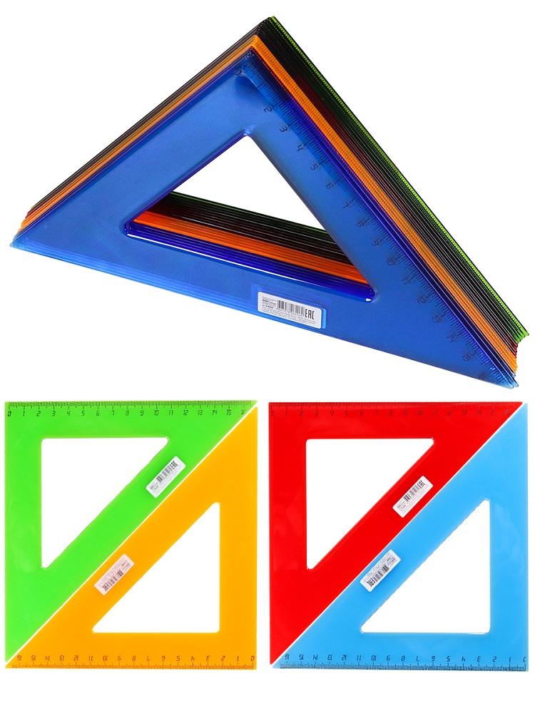 | | Треугольник пласт (45-90-45) 16см ИДП цветн тонированный асорти  Треугольник с односторонней шкалой от компании "Проф-Пресс" изготовлен из цветного прозрачного пластика. Деления шкалы пропечатаны отчётливо. Используется на уроках в школе, при построении графиков и чертежей. Длина: 16 см, разворот: 45 градусов. |
