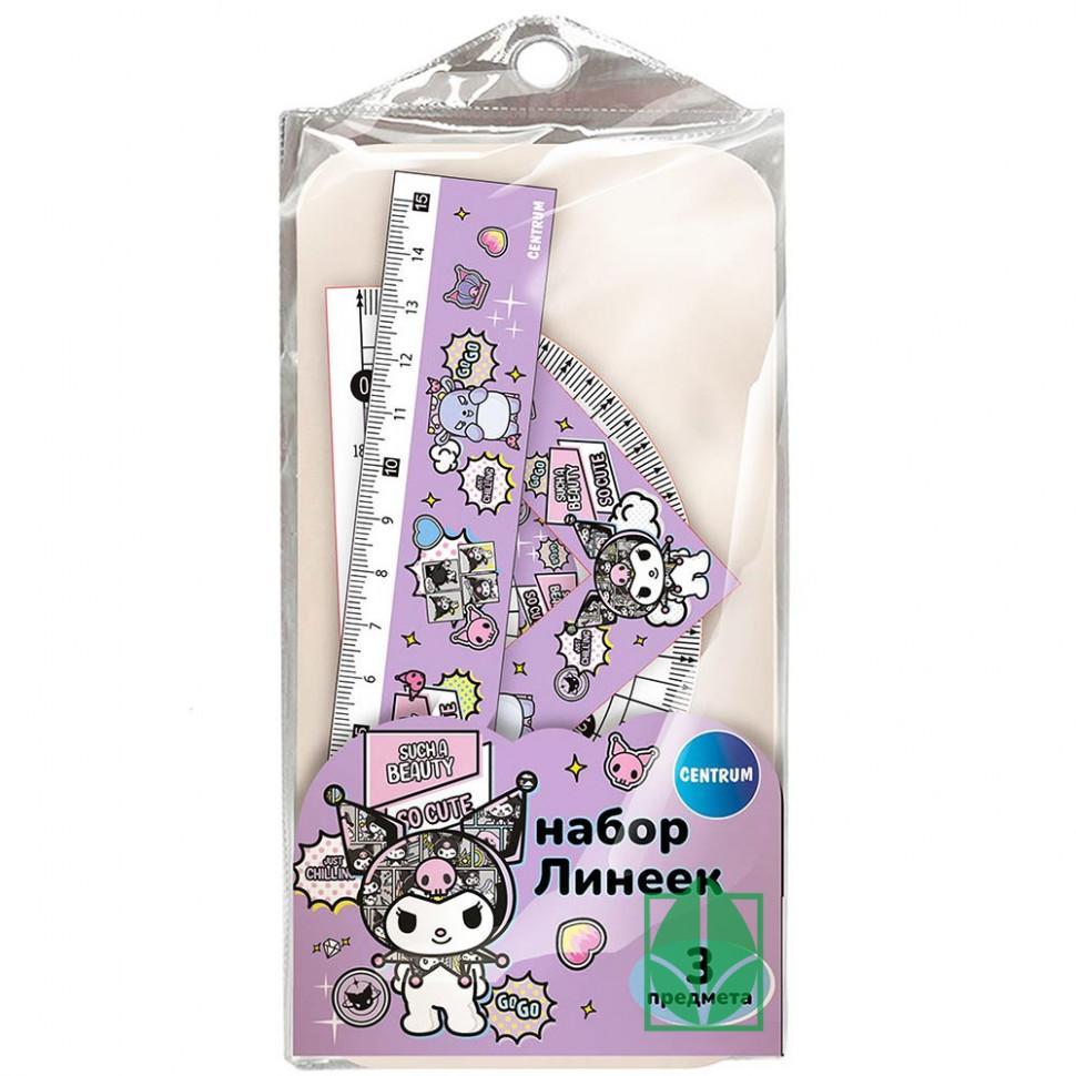 Геометрический набор ( 3 предмета) CENTRUM Куроми и друзья чехол (п/упаковка с европодвесом)