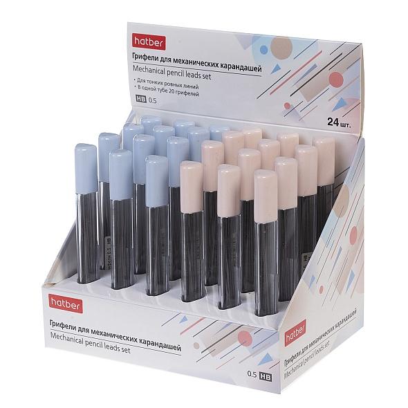 Стержень для автоматического карандаша (грифель) 0, 5*90мм 20шт HB (ХАТБЕР) пл/пенал Ассорти