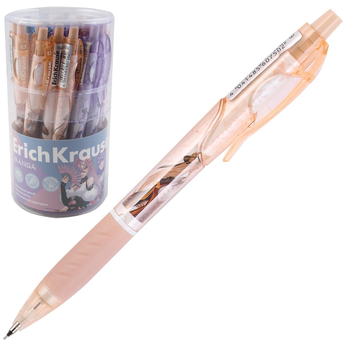 | | Карандаш автоматический с ластиком 0, 7мм ErichKrause Manga HB (цветной корпус) Ассорти  Механический карандаш круглой формы с удобной грип-зоной из резины. Четыре дизайна корпуса. Оснащен ластиом. Твердость HB. Диаметр грифеля – 0.7 мм. |
