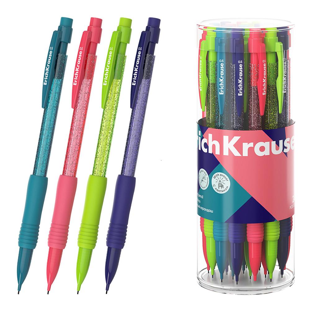 Карандаш автоматический с ластиком 0, 5мм ErichKrause XS (цветной корпус) Ассорти  Круглый механический карандаш. Корпус и кнопка-ластик в ярких неоновых цветах. Твердость HB. Диаметр грифеля 0.5 мм. |