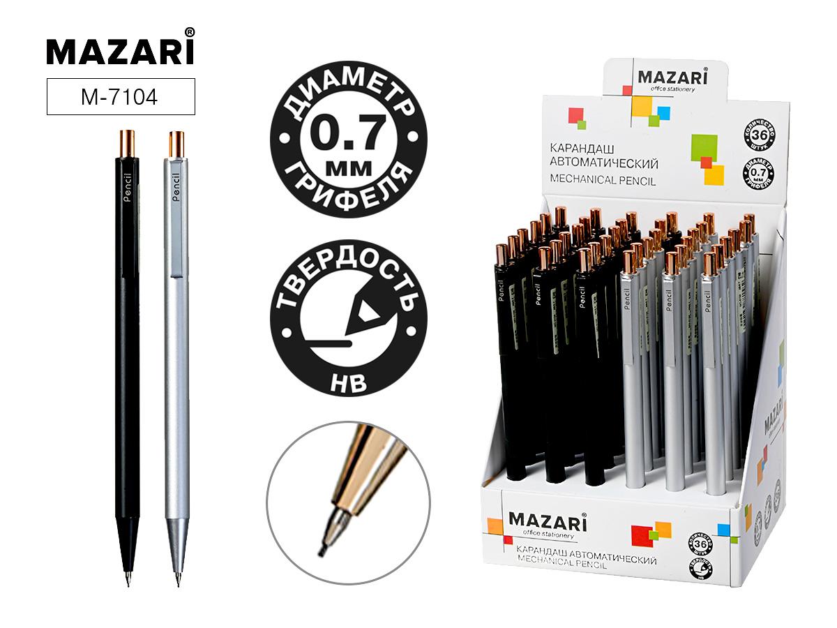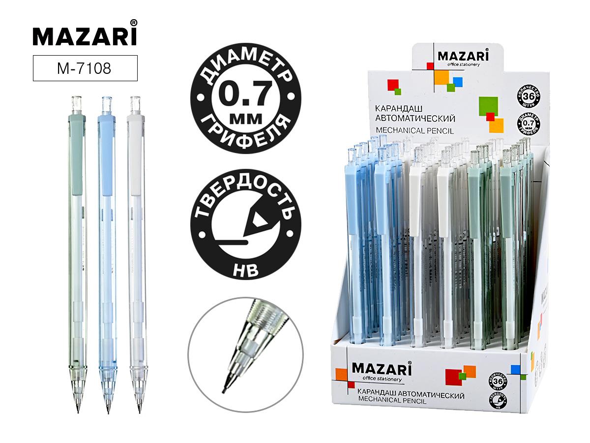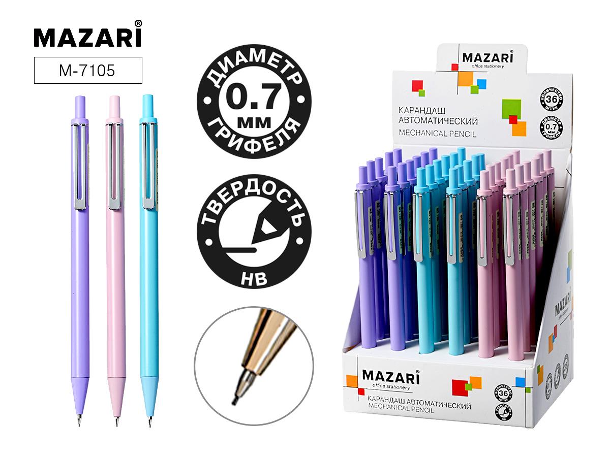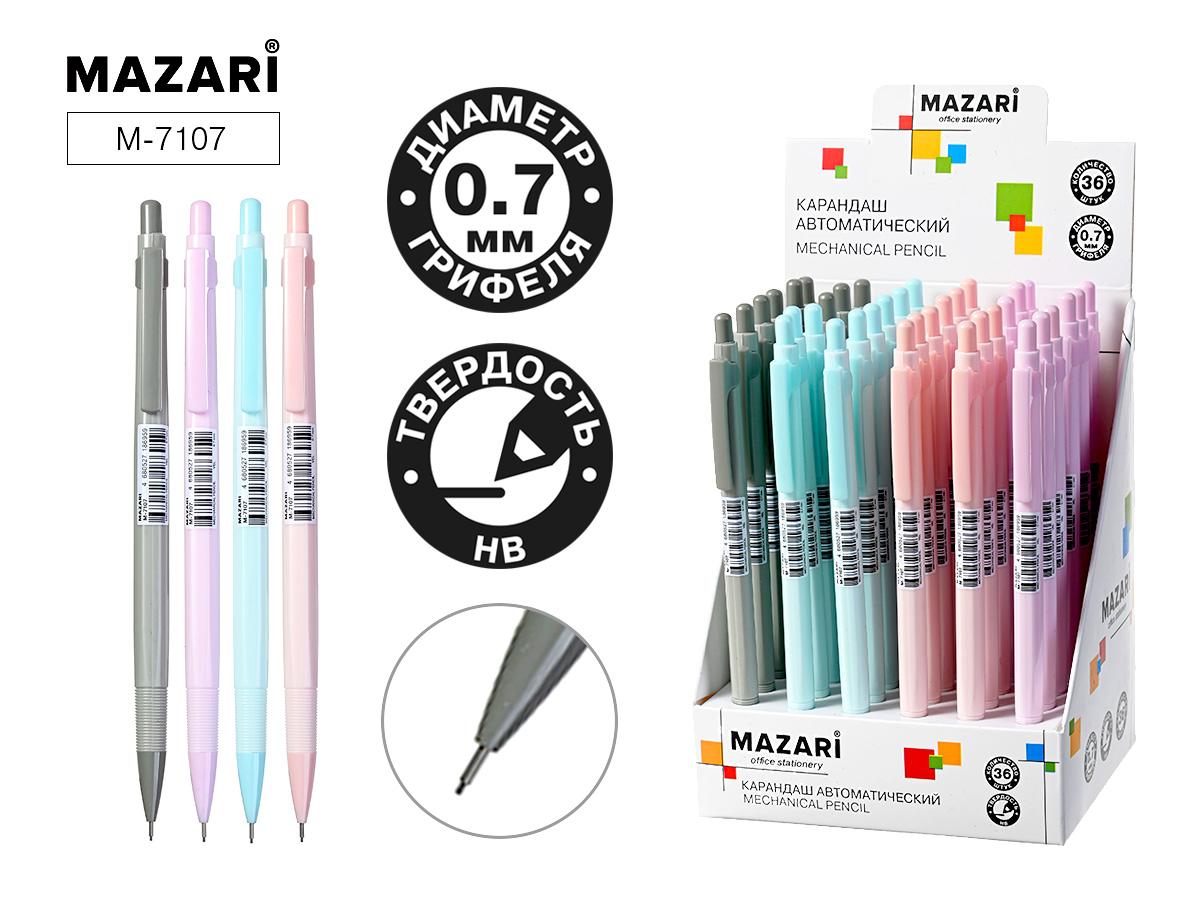 | Карандаш автоматический 0, 7мм MAZARI HB Vio (цветной корпус) Ассорти  Карандаш автоматический чернографитный VIO, диаметр грифеля 0.7 мм, НВ, корпус круглый пластиковый ассорти 3 цвета, картонный дисплей |