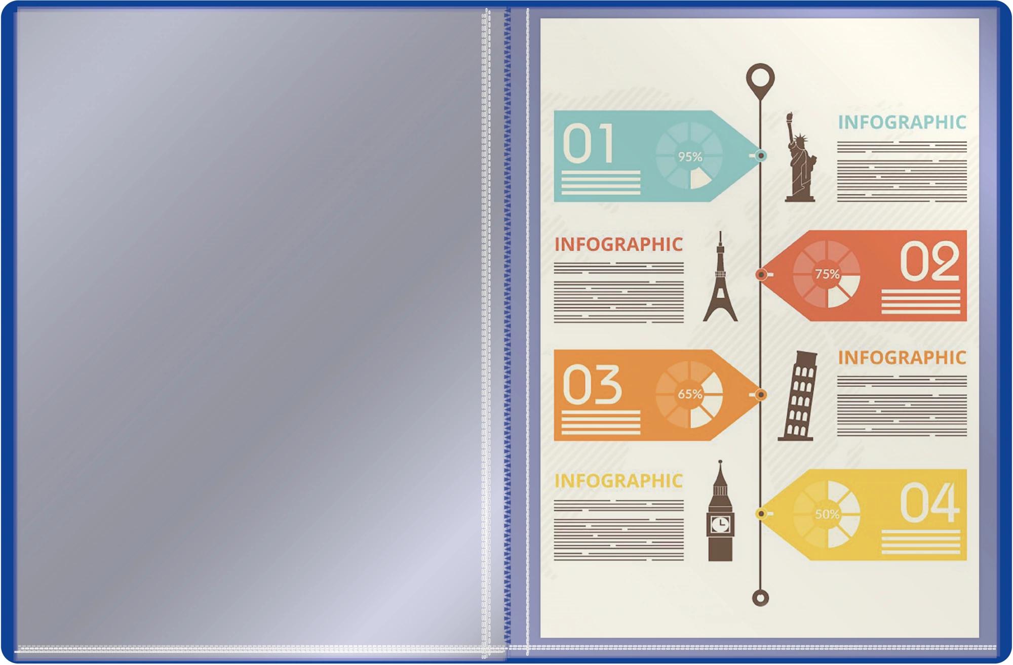 Папка файловая пластиковая А4 30 карманов OFFICE-2000 0, 5мм синяя (п/упаковка)  Папка с мультифорами предназначена для хранения материалов и документов, требующих упорядоченности и наглядного обзора: отчетов, презентаций, коммерческих и персональных портфолио, докладов, дипломных и курсовых работ. Документы надолго сохраняются в отличном состоянии, не требуется их перфорация дыроколом. |