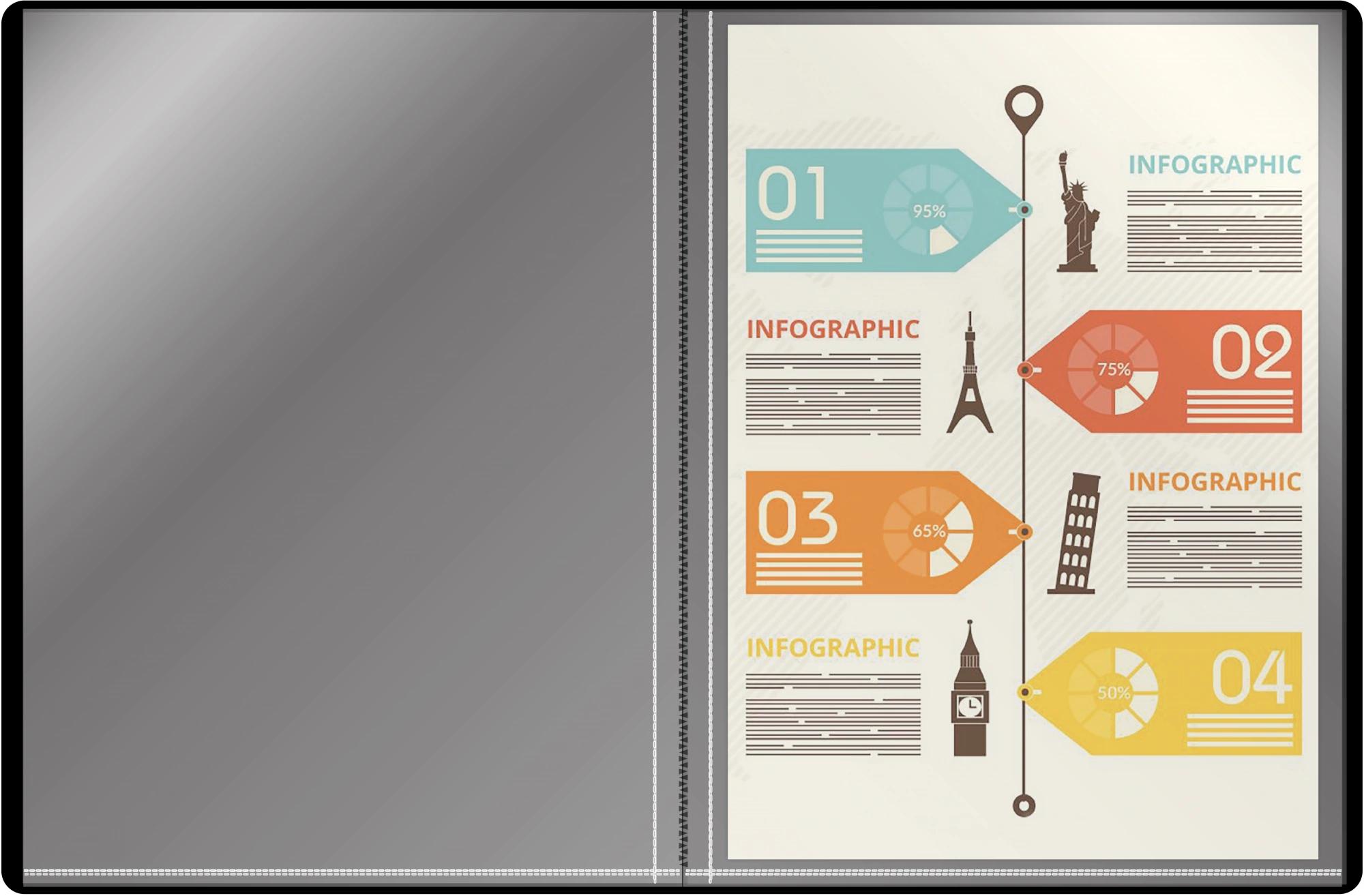 | Папка файловая пластиковая А4 30 карманов MAZARI 0, 5мм черная  Папка с мультифорами предназначена для хранения материалов и документов, требующих упорядоченности и наглядного обзора: отчетов, презентаций, коммерческих и персональных портфолио, докладов, дипломных и курсовых работ. Документы надолго сохраняются в отличном состоянии, не требуется их перфорация дыроколом. |