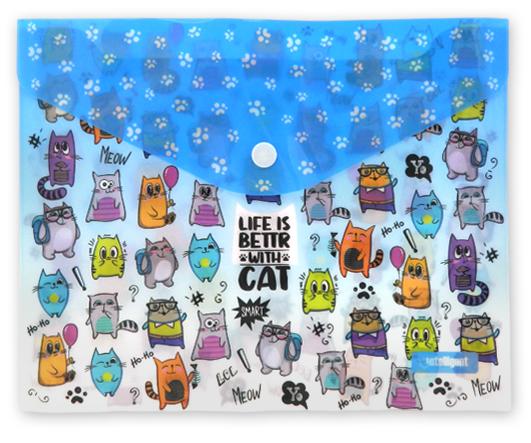 | | Папка на кнопке А5 INTELLIGENT пласт непрозрачная Котики голубая  Папка-конверт закрывается клапаном с кнопкой. Подходит как для хранения, так и транспортировки документов, предохраняя их от загрязнения и смятия. |