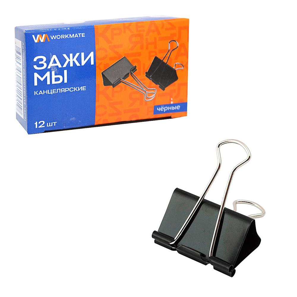 | Канцелярский зажим для бумаг чёрный 32мм WORKMATE 15-1610  Зажим для бумаги (биндер) предназначен для временного скрепления определённого количества документов, не деформируют листы бумаги. |