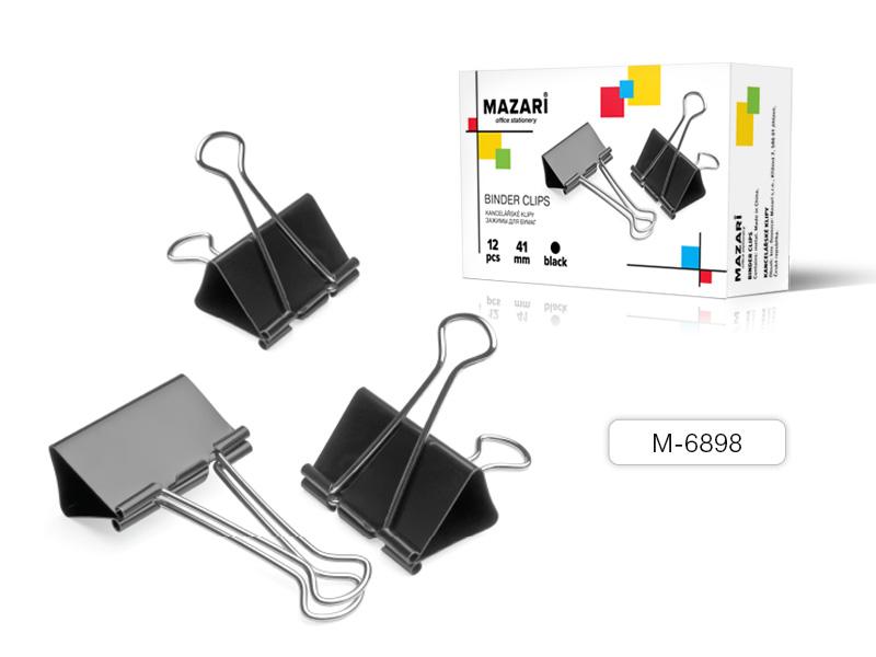 | Канцелярский зажим для бумаг чёрный 41мм MAZARI  Зажим для бумаги (биндер) предназначен для временного скрепления определённого количества документов, не деформируют листы бумаги. |