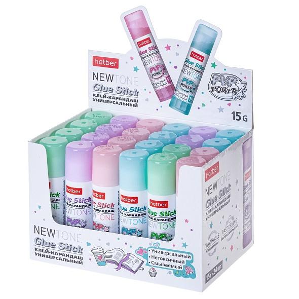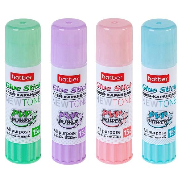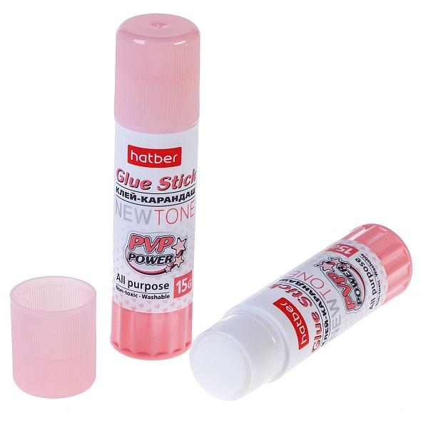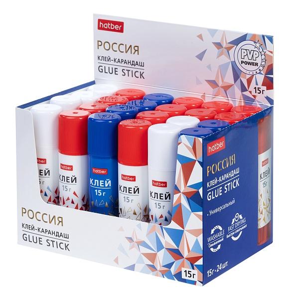 | Клей-карандаш канцелярский 15г (ХАТБЕР) на осн PVP Россия Ассорти