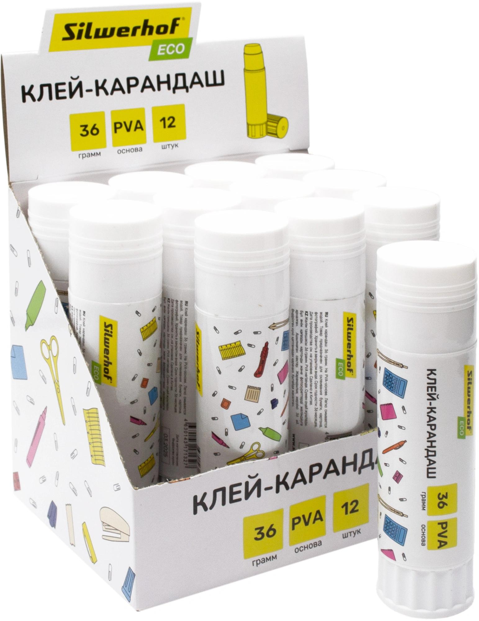 | | Клей-карандаш канцелярский 36г SILWERHOF Eco на основе ПВА  Клей - карандаш незаменим в офисной работе, на уроках труда и в домашнем использовании. Надежно склеивает любые виды бумаги, картон, тонкий текстиль и фотографии. Ложится тонким полупрозрачным слоем, равномерно, без излишков, распределяясь по поверхности, не деформируя ее при этом. Круглый пластиковый корпус с выкручивающимся механизмом обеспечивает плавную подачу клеевого стрежня. Благодаря функциональному механизму расход клея минимален, поэтому даже небольшого тюбика хватит на длительное время. |