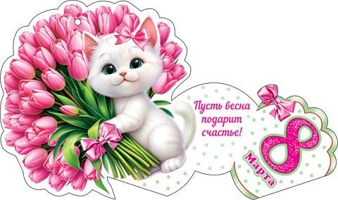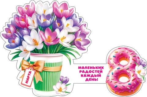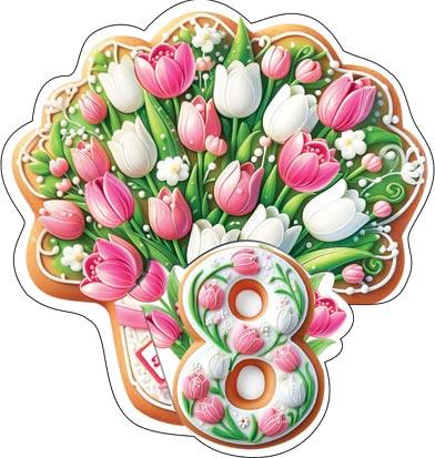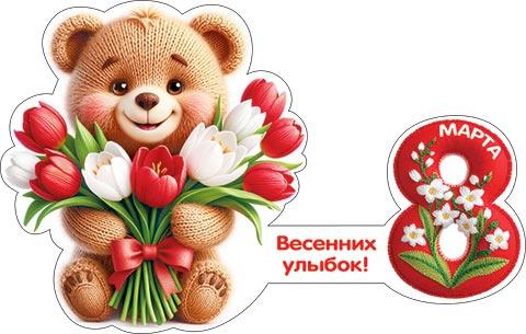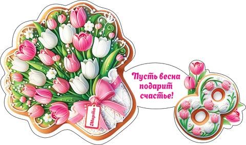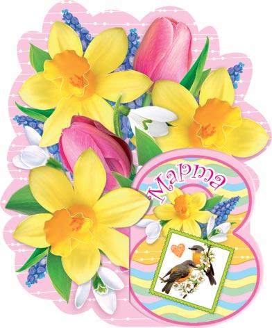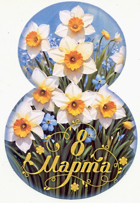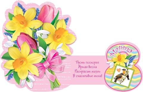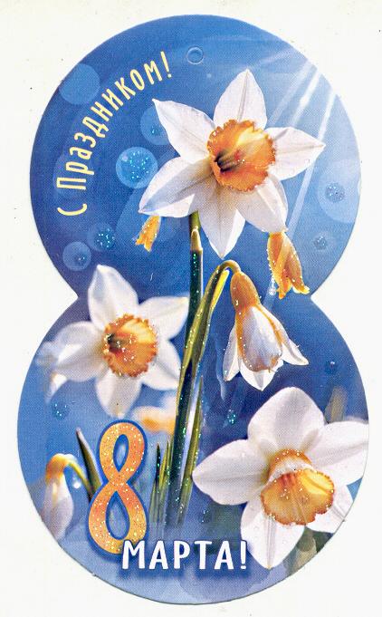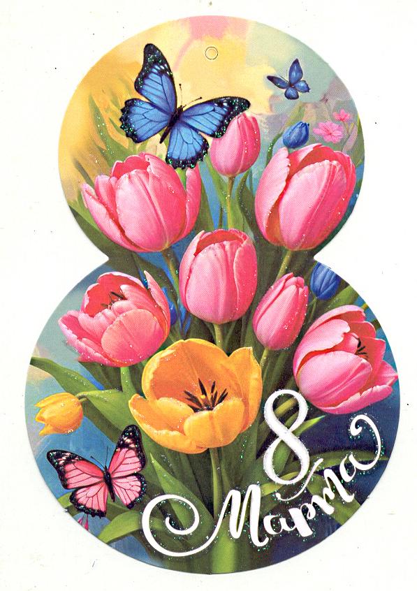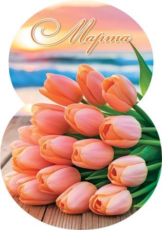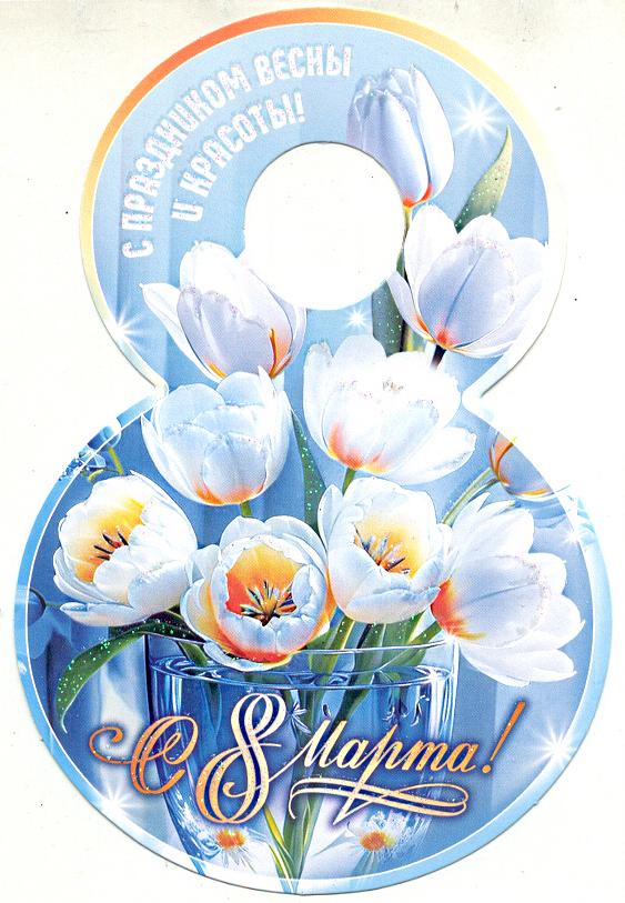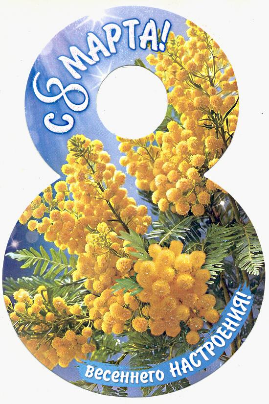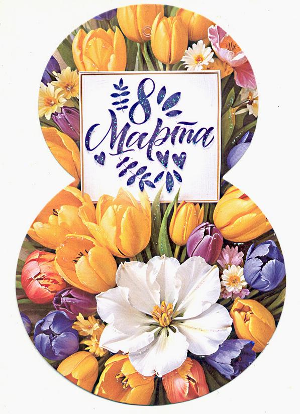 | Открытка 8 МАРТА! карточка (МИР ОТКРЫТОК) 7-01-8214А 8 Марта (вырубка)