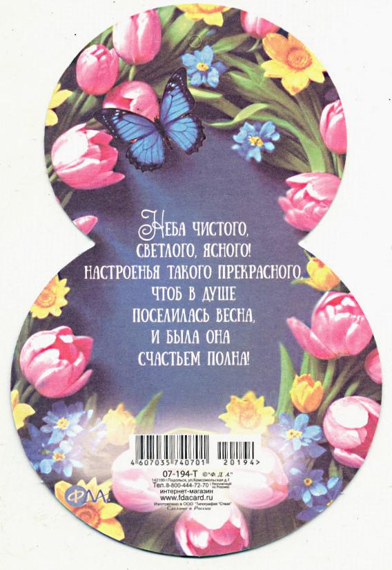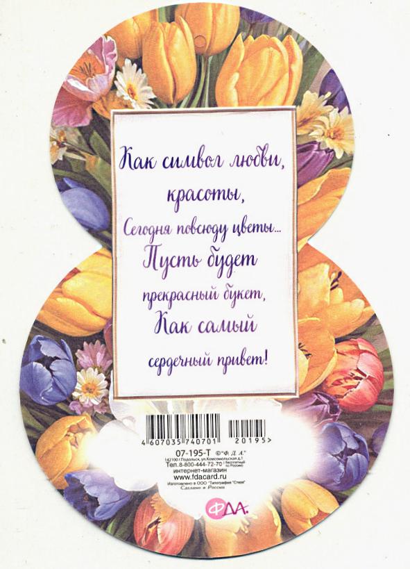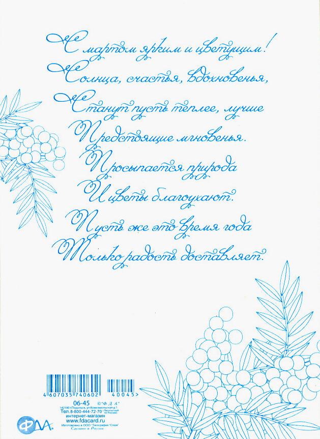 | | Открытка 8 МАРТА! карточка ФДА 06-45 8 Марта!