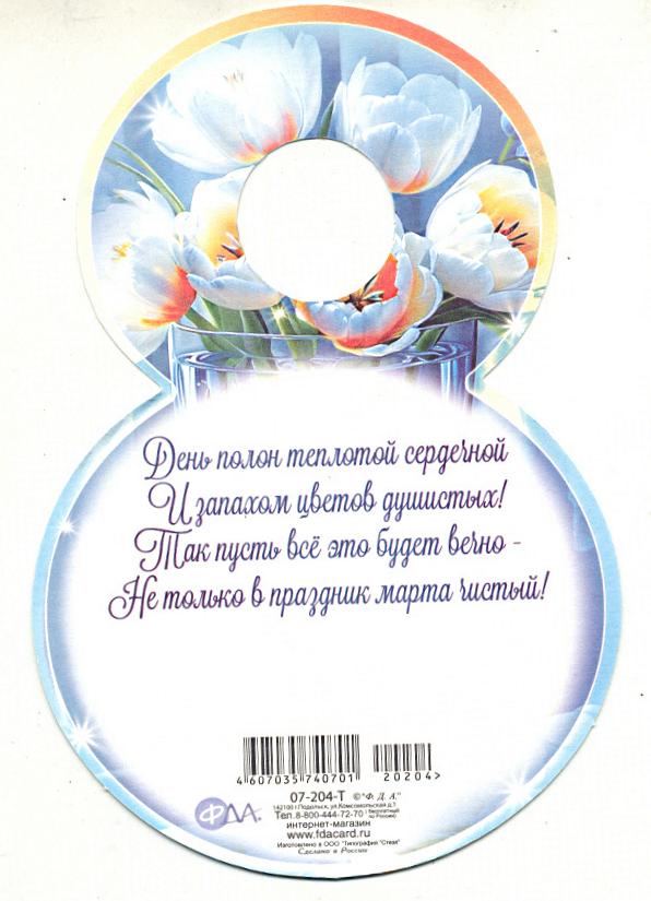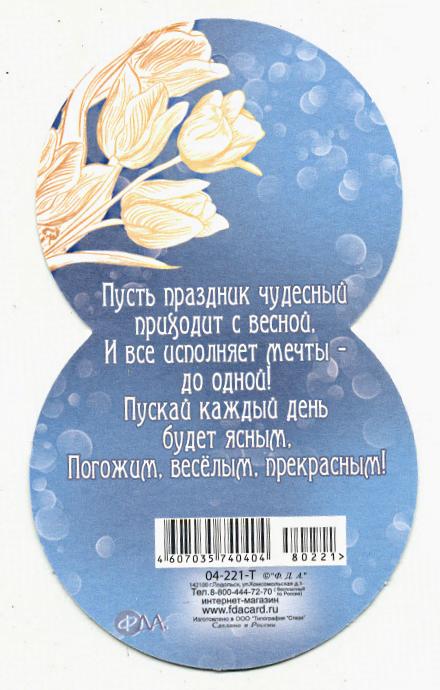 Открытка 8 МАРТА! мини ФДА 04-217-T 8 Марта (вырубка) (с блестками)