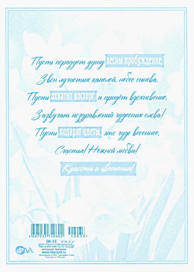 | | Открытка 8 МАРТА! карточка ФДА 06-33 С 8 Марта!