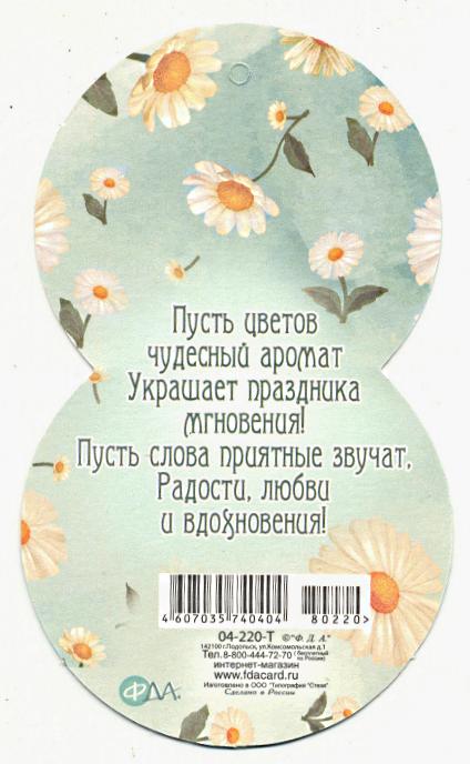 | | Открытка 8 МАРТА! мини ФДА 04-220-T 8 Марта (вырубка) (с блестками)