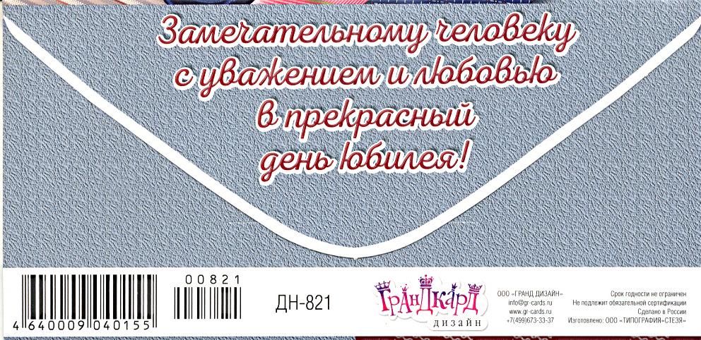 | | Открытка Поздравительная Юбилей для денег (Гранд-Микс) ДН-821 В День Юбилея  Замечательному человеку с уважением и любовью в прекрасный день юбилея! |