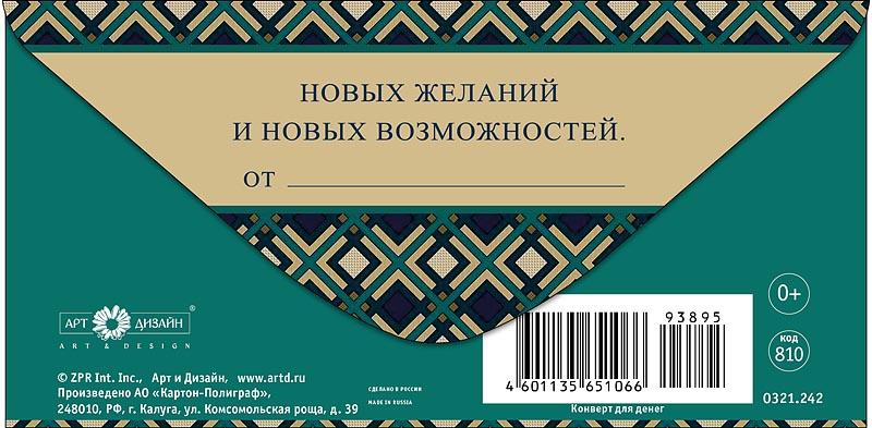 Деньги - самый нужный и универсальный подарок, который тоже нуждается в красивой упаковке. Наш конверт для денег легко решит эту задачу! Благодаря оригинальному принту и тематической надписи такой презент не будет казаться бездушным и материальным. Конверт подходит для купюр всех номиналов, в него можно вложить маленький сувенир или шоколадку.