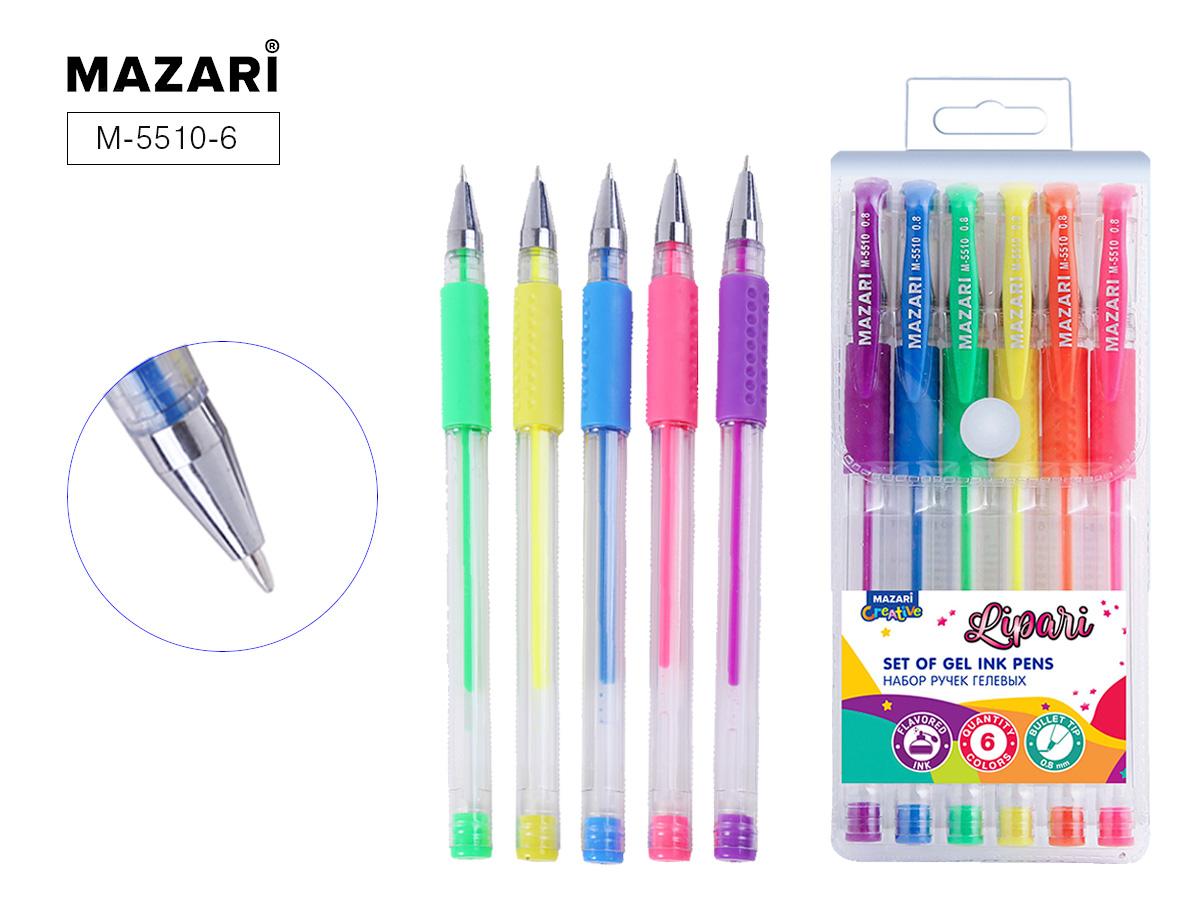 | | Ручки гелевые набор 6 цветов MAZARI Lipari 0, 8мм (грип-зона из резины) арома (прозрачный корпус) (п/упаковка с европодвесом)  Гелевая ручка - это надежная ручка, проверенная временем. В ней используются чернила, в которых пигмент суспензирован в геле на водной основе. Поскольку чернила густые и непрозрачные, они более отчетливо видны на гладких поверхностях, чем типичные чернила, используемые в шариковых ручках или фломастерах. Благодаря гелеобразной консистенции чернил и специальной технологии в пишущем узле гелевые ручки обеспечивают мягкое и комфортное письмо. Гелевая ручка может писать по любой поверхности и по любой бумаге. Ручка идеально подходит для экзаменов ЕГЭ, ведения документооборота, заполнения бланков, заметок в ежедневнике, заполнения личного дневника, рисунков в скетчбуке. |