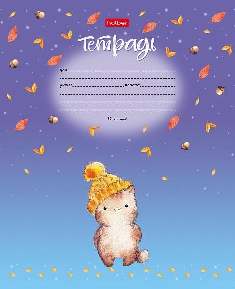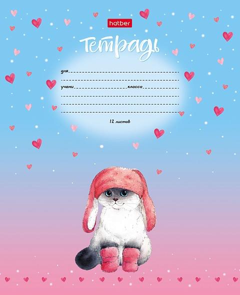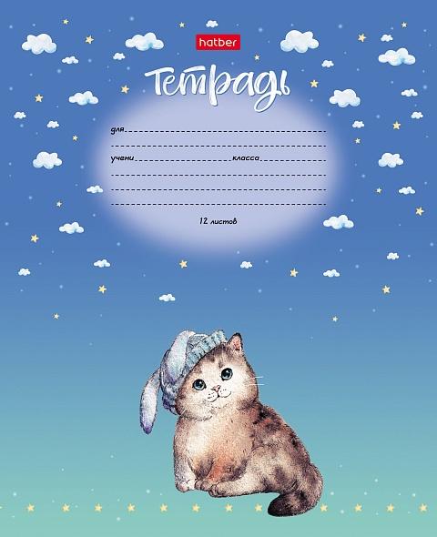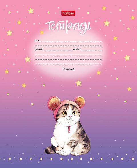 | Тетрадь 12 листов А5 на скрепке (клетка) (ХАТБЕР) офсет (картонная обложка) КотоМания MIX Ассорти  Тетрадь 12л А5ф клетка 65г/кв.м на скобе 5 диз.в блоке скругл.углы серия -КотоМания- |