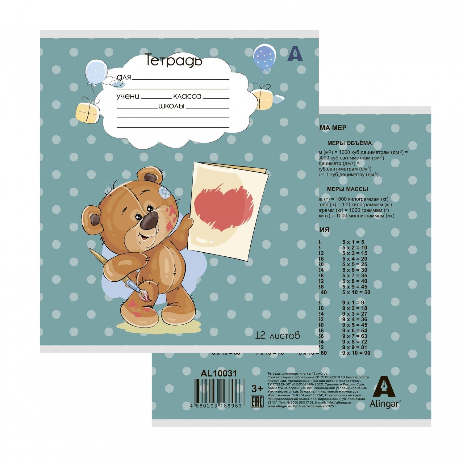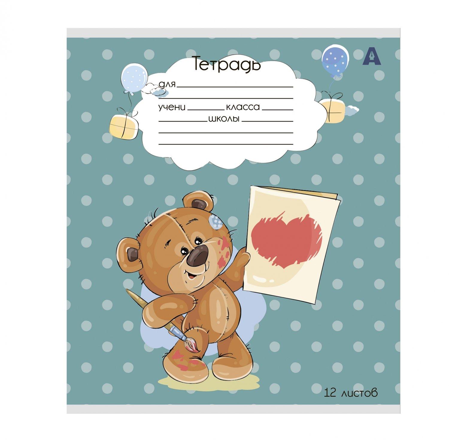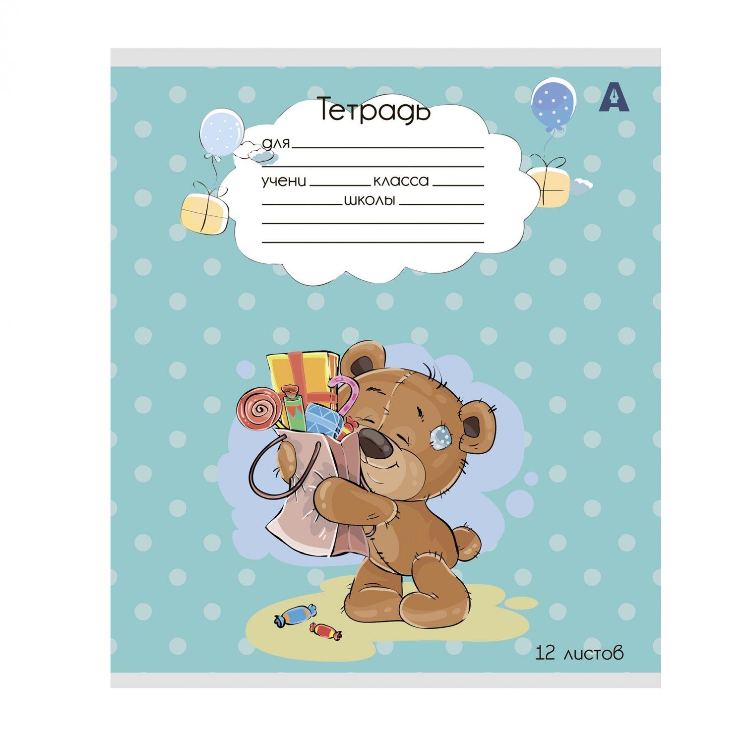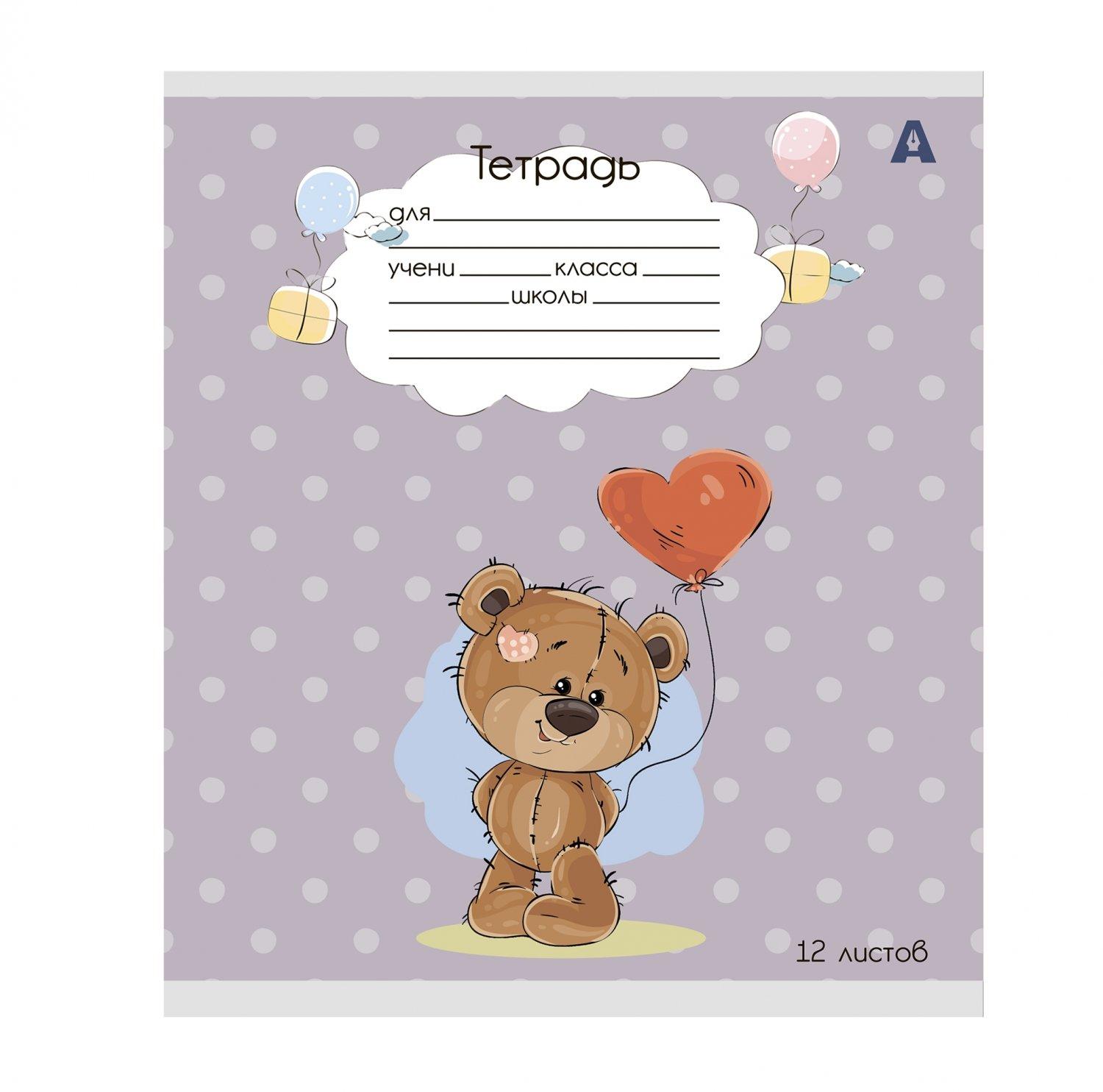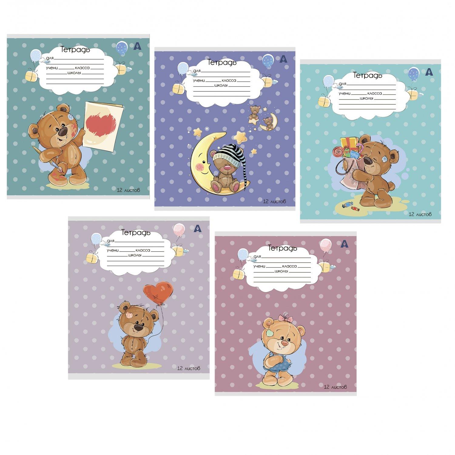 | Тетрадь 12 листов А5 на скрепке (клетка) ALINGAR офсет (мелованная картонная обложка) Плюшевые мишки MIX Ассорти  Тетрадь 12л., клетка, Alingar, скрепка, блок офсет, 100% белизна, мелованный картон (стандарт), "Плюшевые мишки", 5 дизайнов в пленке т/у |