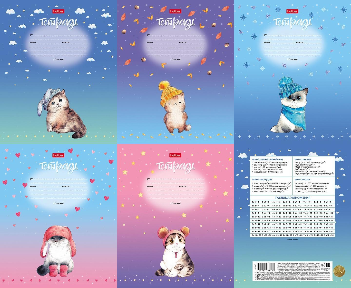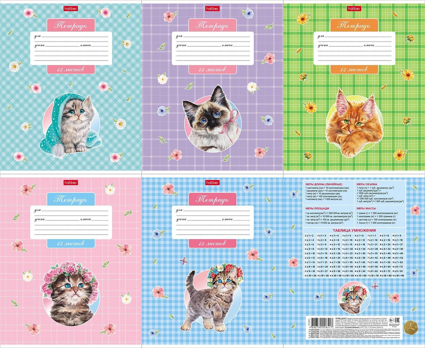 | | Тетрадь 12 листов А5 на скрепке (клетка) (ХАТБЕР) офсет (картонная обложка) Котики бывают разными MIX Ассорти