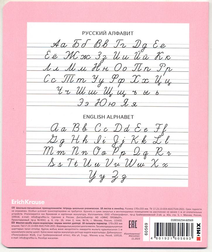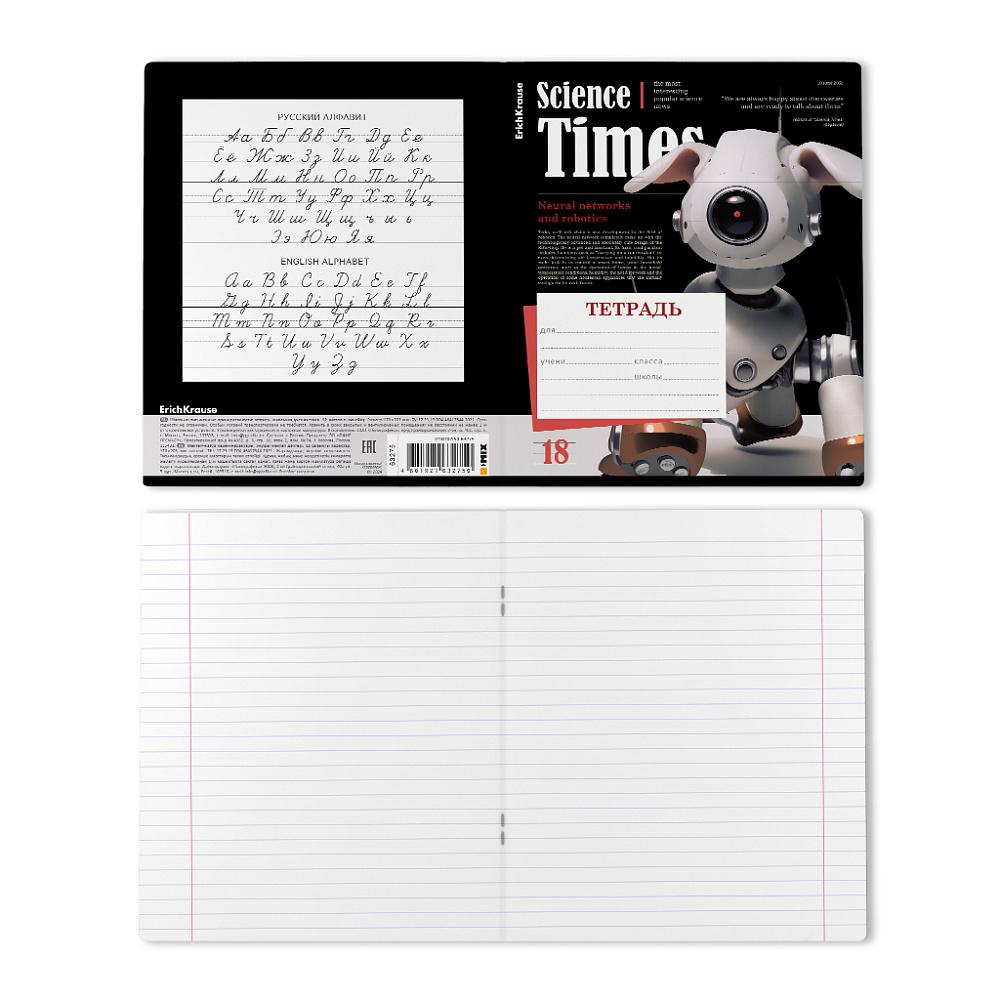 | Тетрадь 18 листов А5 на скрепке (линейка) ErichKrause офсет (картонная обложка) Tech News Mix-pack Ассорти  Тетрадь школьная ученическая формата А5+ (170х203 мм). Обложка из высококачественного мелованного картона плотностью 170 г/м2. В блоке 18 листов в линейку с полями. Бумага офсетная плотностью 60 г/м2. Цвет линовки - синий. Скругленные уголки обложки и блока. Тип скрепления - скоба. Тетради разных цветов упакованы в термоусадочную пленку по 10 штук. |