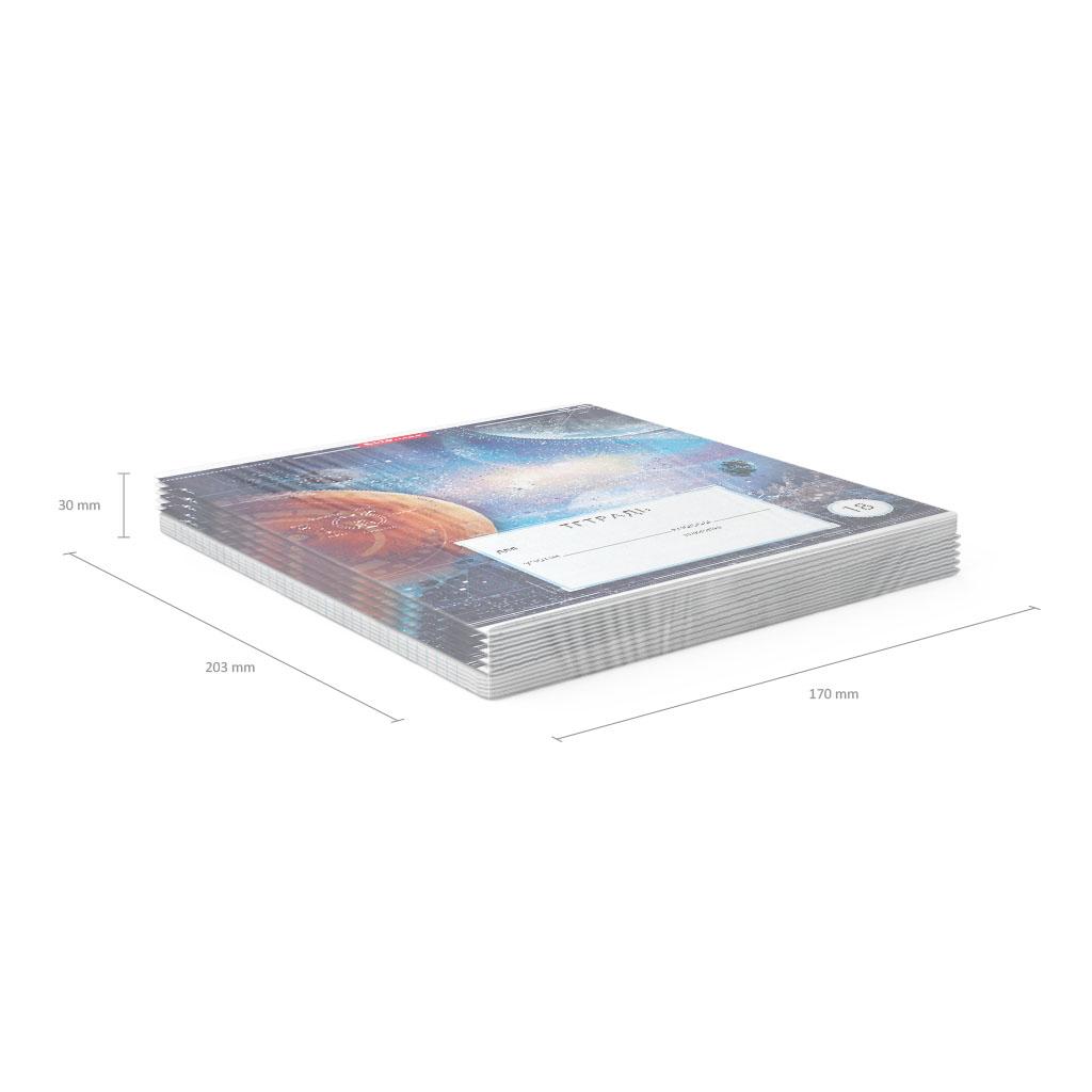 | | Тетрадь 18 листов А5 на скрепке (линейка) ErichKrause офсет (картонная обложка) Космос Ассорти  Тетрадь школьная ученическая формата А5+ (170х203 мм). Обложка из высококачественного млованного картона плотностью 180 г/м2. В блоке 18 листов в линейку с полями. Бумага офсетная плотностью 60 г/м2. Цвет линовки - синий. Скругленные уголки обложки и блока. Тип скрепления - скоба. Тетради одного дизайна упакованы в термоусадочную пленку по 10 штук. Товар поставляется в нескольких вариантах дизайна без возможности выбора. |