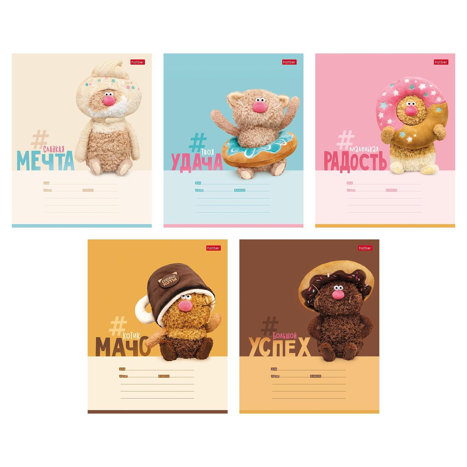 | Тетрадь 18 листов А5 на скрепке (линейка) (ХАТБЕР) офсет (картонная обложка) Кофейные коты MIX Ассорти  Тетрадь А5 формата 18 листов. Обложка- мелованный картон. Внутренний блок- офсет 65 гр., линия, красные поля. Скрепление- скоба. Тетрадь подойдет для занятий любому школьнику, используется для письма шариковыми, гелевыми и капиллярными ручками. Скругленные уголки помогут надолго сохранить привлекательный внешний вид тетради. |