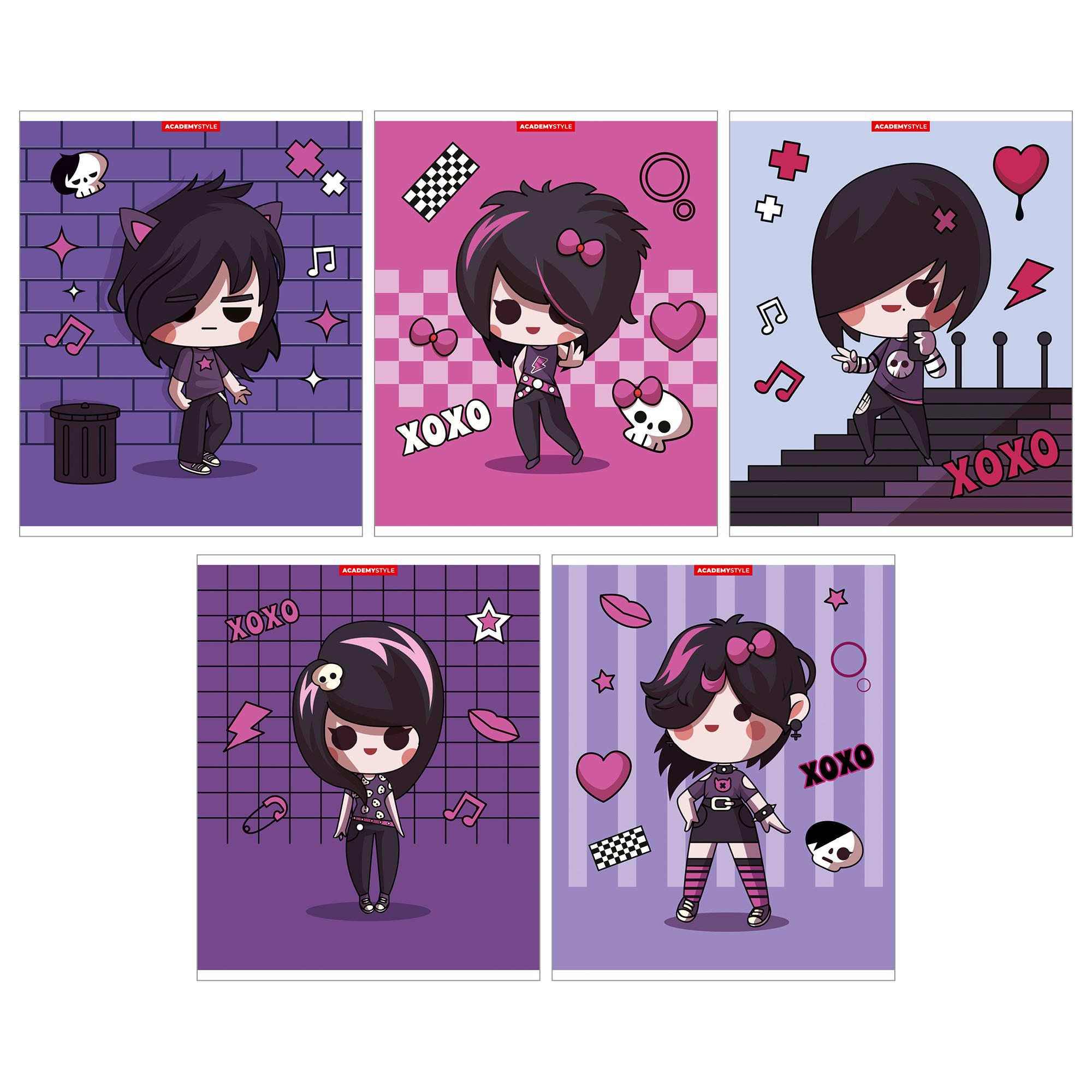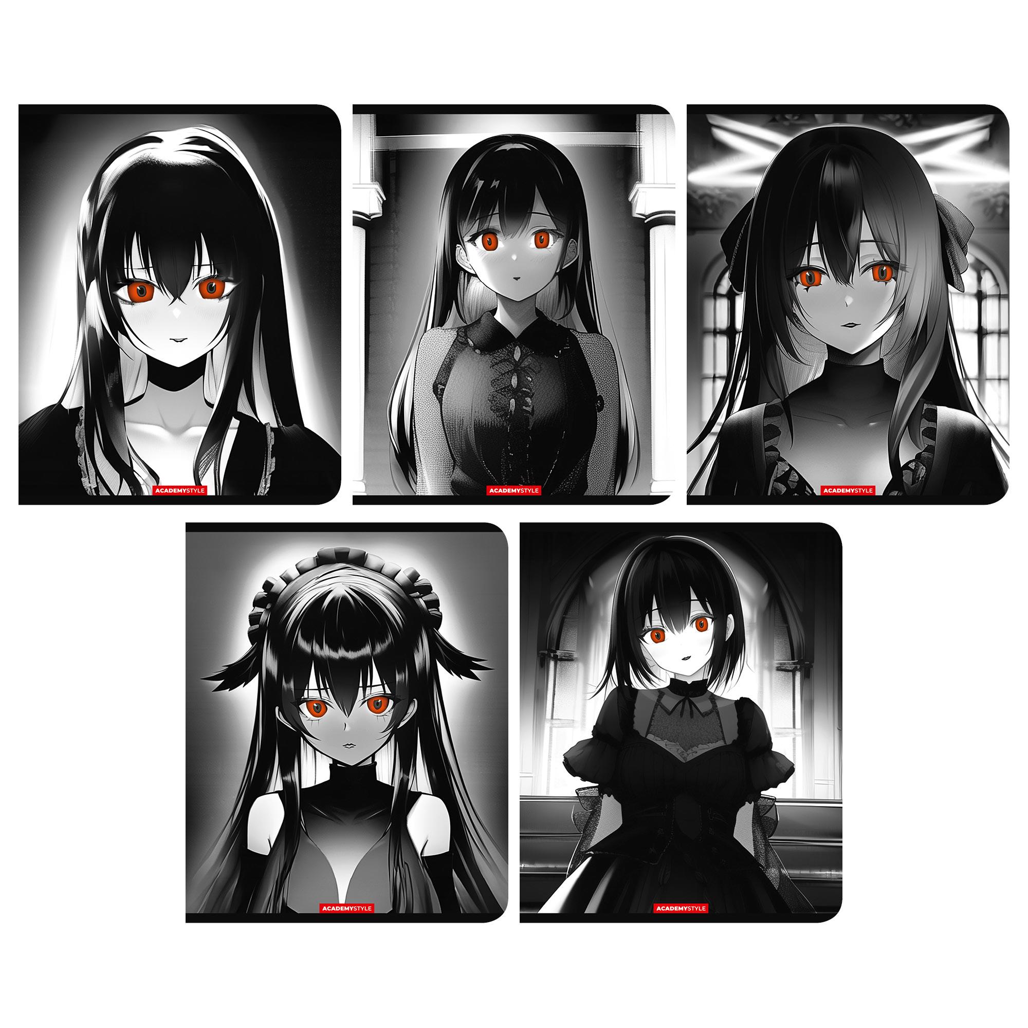 Тетрадь общая А5 на скрепке 48 листов (клетка) (АКАДЕМИЯ) офсет (блестки) Девочки Готы Ассорти  обложка - картон мелованный, блок 60-65 г |