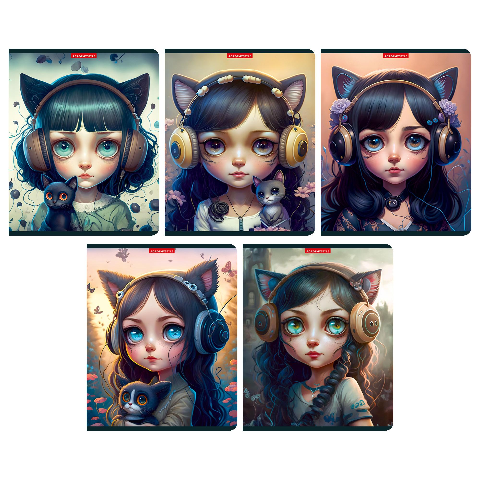 | Тетрадь общая А5 на скрепке 48 листов (клетка) (АКАДЕМИЯ) офсет (матовая ламинация) Большие глаза Девочка-кошка Ассорти  Тетрадь 48л скрепка А5 клетка матовая ламинация обложка - картон мелованный, блок 60-65 г/кв.м. |