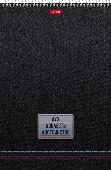 Блокнот (картонная обложка, твердая подложка) (на гребне) А4 60 листов (ХАТБЕР) (клетка) лак Дух, Доблесть, Достоинство  Блокнот А4 формата. Количество листов: 60. Обложка: мелованный картон, твердая подложка. Дополнена спецэффектом в виде УФ-лака. Внутренний блок: офсет 60 гр, клетка. Скрепление: спираль. Стильный и универсальный блокнот подойдёт для важных записей и заметок. Скрепление 'спираль' дает возможность раскрывать блокнот на 360 градусов, а твердая подложка позволяет делать записи на весу. Блокноты ТМ Hatber российского производства отпечатаны на современном высокотехнологичном оборудовании и соответствуют стандартам качества. |
