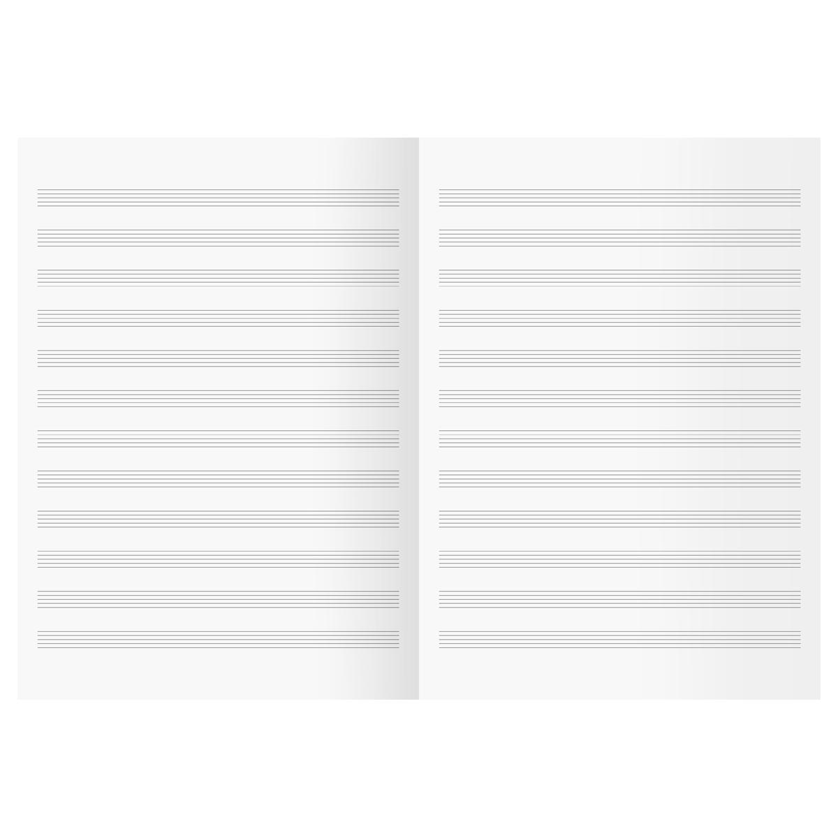 | Тетрадь нотная вертикальная А4 16 листов КТС офсет Ноты  Тетрадь для нот, 16 листов, формат А4, плотность 60 гр/м2. Внутренний блок - высококачественная белая офсетная бумага. Линовка блока - нотная строка черного цвета. Обложка - офсетная бумага, полноцветная печать. Крепление - скоба. |
