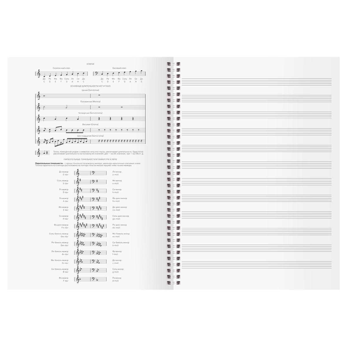 | Тетрадь нотная вертикальная А4 24 листа BG офсет (на гребне) (со справочным материалом) Коты Ассорти  Тетрадь для нот «Коты» от BG со справочной информацией — идеальный помощник для студентов и преподавателей музыкальных учебных заведений. Внутренний блок состоит из 24 листов плотностью 60 г/м². Формат А4 позволит брать тетрадь на репетиции и концерты. Бумага со 100 % белизной хорошо взаимодействует с различными типами чернил и карандашами. Записи получаются четкими и аккуратными. Обложка из картона защищает тетрадь от повреждений. Дизайн вдохновит на создание творческих шедевров. Тетрадь идеально подходит для музыкантов, которые создают свои композиции или учат новые произведения. • Формат: А4; • Кол-во листов: 24; • Ориентация: вертикальная; • Крепление: гребень; • Материал обложки: картон |