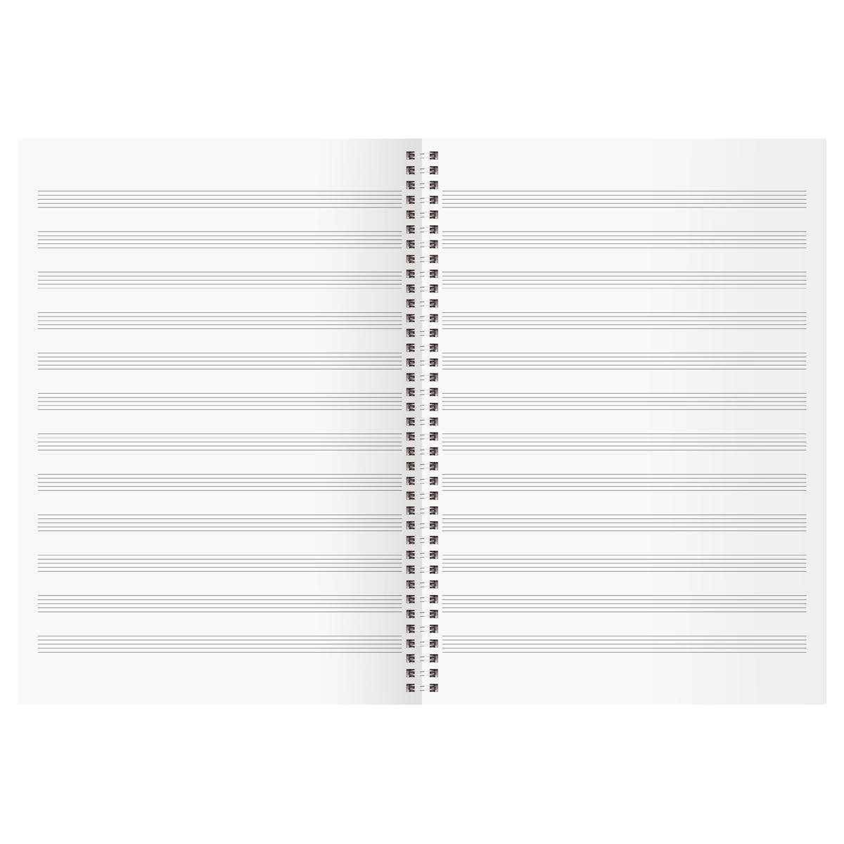 | | Тетрадь нотная вертикальная А4 16 листов КТС офсет Котенок  Тетрадь для нот, 16 листов, формат А4, плотность 60 гр/м2. Внутренний блок - высококачественная белая офсетная бумага. Линовка блока - нотная строка черного цвета. Обложка - офсетная бумага, полноцветная печать. Крепление - скоба. |