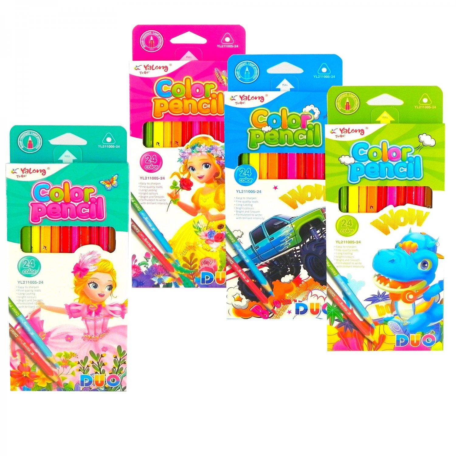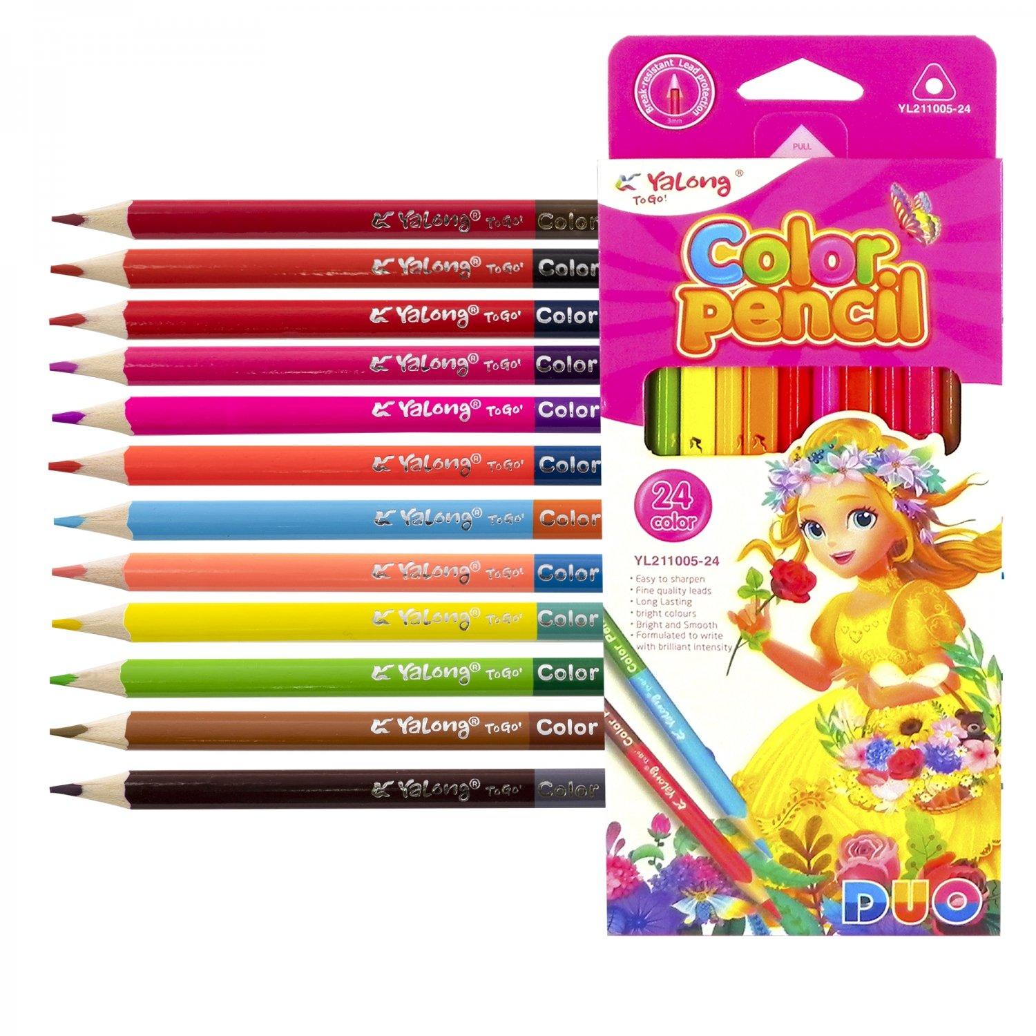 Карандаши цветные двусторонние 12шт 24 цвета (трехгранный корпус) YALONG Softness (заточенные) (картонная упаковка с европодвесом) Ассорти  Цветные карандаши - прекрасный выбор для детского творчества. Занятие рисованием развивает мелкую моторику, стимулируя участки мозга, отвечающие за мышление, речь, зрительную и двигательную память, а также координацию. Рисование развивает пространственный интеллект, творческое мышление, фантазию и воображение малыша. В качестве результата своего труда ребенок получает реальный результат - рисунок, что учит его целеполаганию и формирует ориентацию на результативную деятельность. Прекрасно подходит для занятий рисованием в детском саду, кружках, дома, школе. Рекомендовано детям от 3-х лет. |