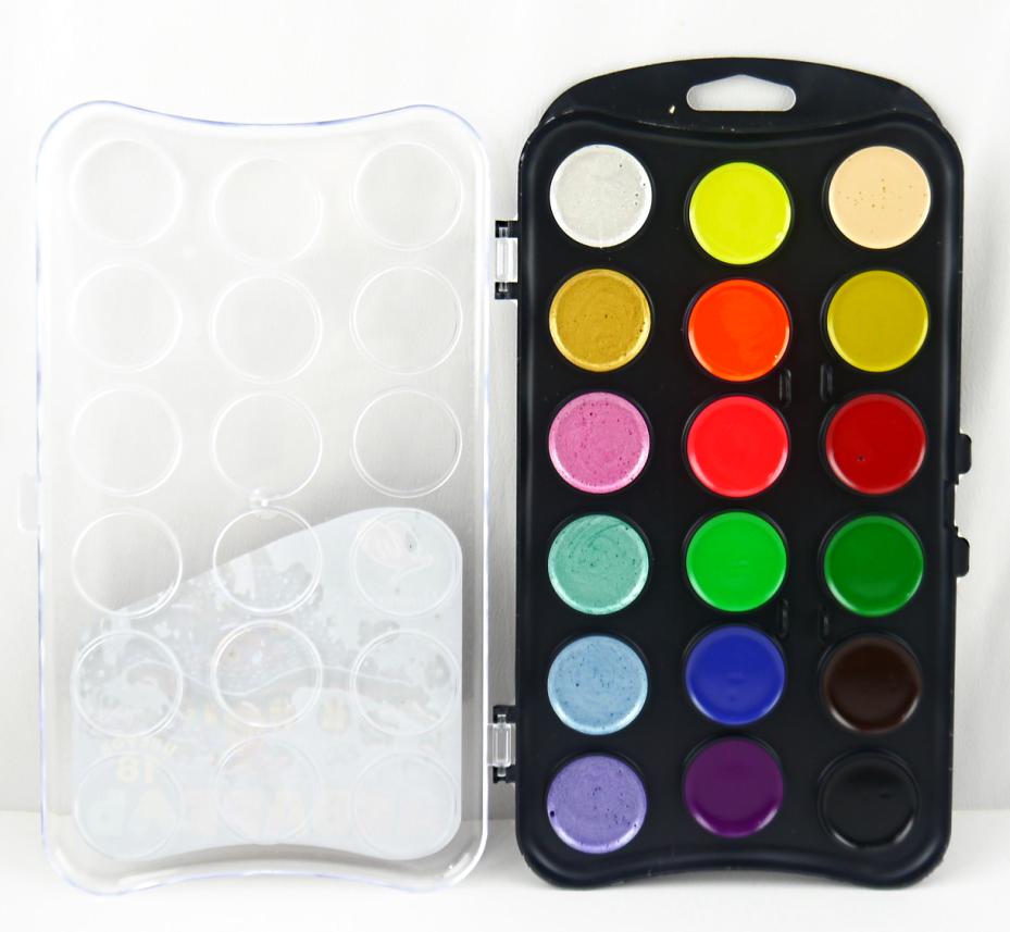 | | Краски акварельные медовые 18 цветов ЛУЧ Классика (без кисточки) (п/упаковка с европодвесом)  Высококачественная краска для детского творчества, изготовленная по классической рецептуре с использованием натуральных природных компонентов (меда, патоки, растительного клея) на основе светостойких пигментов высокого класса с добавлением пищевых консервантов. Краски широко используются для детского творчества, а также для художественных, оформительских и декоративно-прикладных работ. В акварели есть мёд, что значительно улучшает её качество и внешний вид. Она безопасна для детей (безопасность продукции гарантируют регулярные проверки на соответствие требованиям по безопасности Российского законодательства, требованиям Таможенного союза и требованиям по безопасности гармонизированных стандартов ЕС). Краска обладает яркими, чистыми цветами, прозрачна при нанесении, без вкраплений. Прекрасно размывается и разносится по поверхности бумаги. Краски смешиваются между собой, сохраняя насыщенность цвета. Краска легко смывается с рук и одежды. Срок годности не ограничен. |
