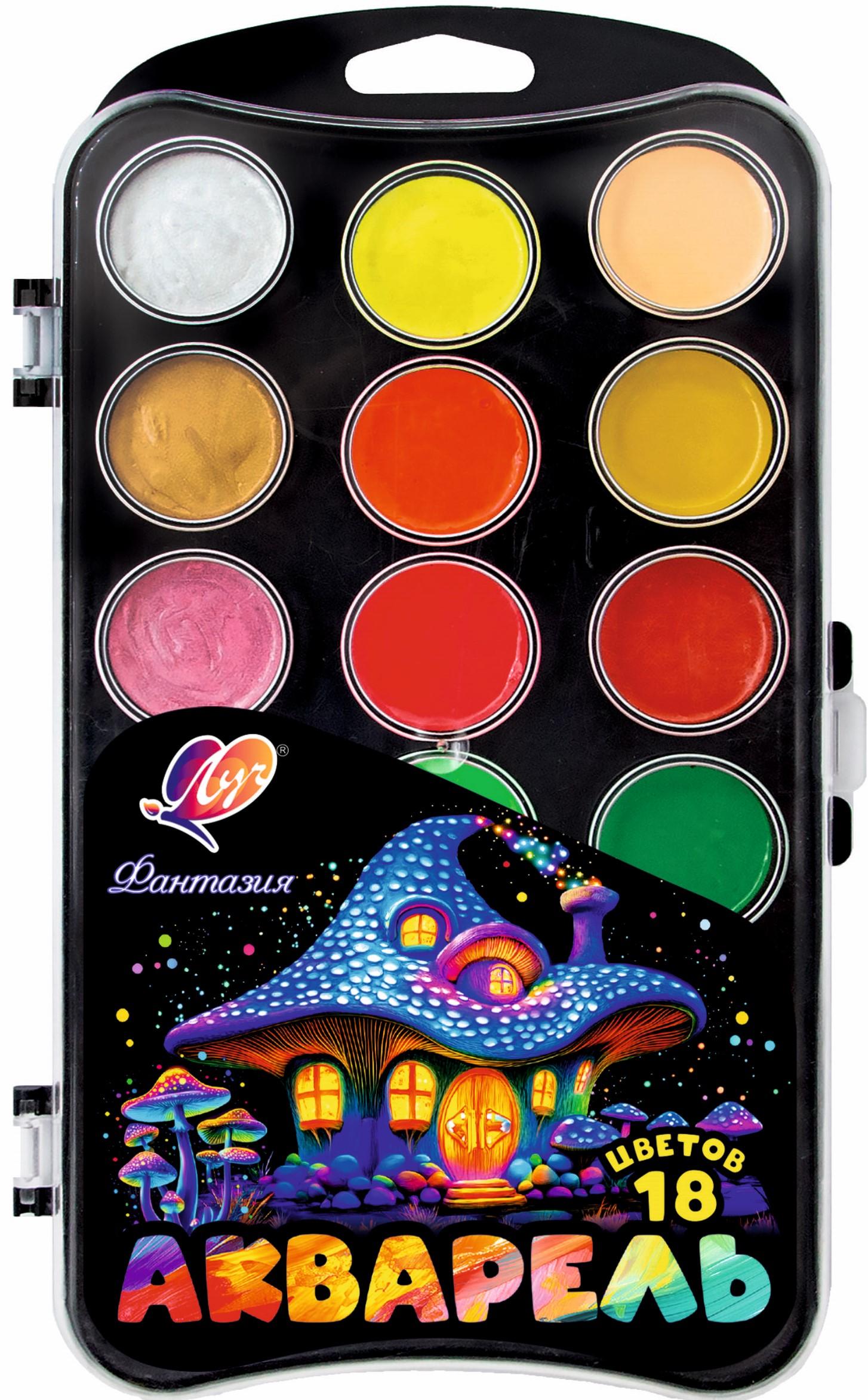 Краски акварельные 18 цветов ЛУЧ Фантазия (Черная) (без кисточки) (п/упаковка с европодвесом)  Новый набор акварельных красок "Фантазия" станет замечательным подарком для детей дошкольного и школьного возраста, которые не ограничивают свою фантазию и используют в творчестве разнообразные материалы и техники. Набор акварели "Фантазия" включает в себя 6 классических, 6 неоновых и 6 перламутровых цветов. Краски разлиты в донышко чёрного цвета с европодвесом, прозрачная крышка. Красивая палитра цветов (классические, неоновые, перламутровые) В акварель добавлен мёд, что делает краску более эластичной и улучшает её качество Акварель прекрасно размывается и разносится по поверхности бумаги Прозрачная основа при нанесении, без вкраплений Легко наполняется на кисть Краски смешиваются между собой, сохраняя яркость и красоту цвета Срок годности не ограничен |
