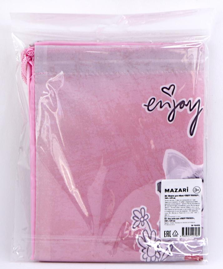 | Сумка-мешок для сменной обуви MAZARI 34*42см Enjoy youself (п/упаковка с европодвесом)  Сумка-мешок для обуви предназначена для транспортировки сменной обуви на занятия по физкультуре, в секции, кружки, бассейн, спортзал; его можно использовать в качестве сумки для сменной одежды; как чехол для хранения обуви; можно брать с собой в путешествия. |