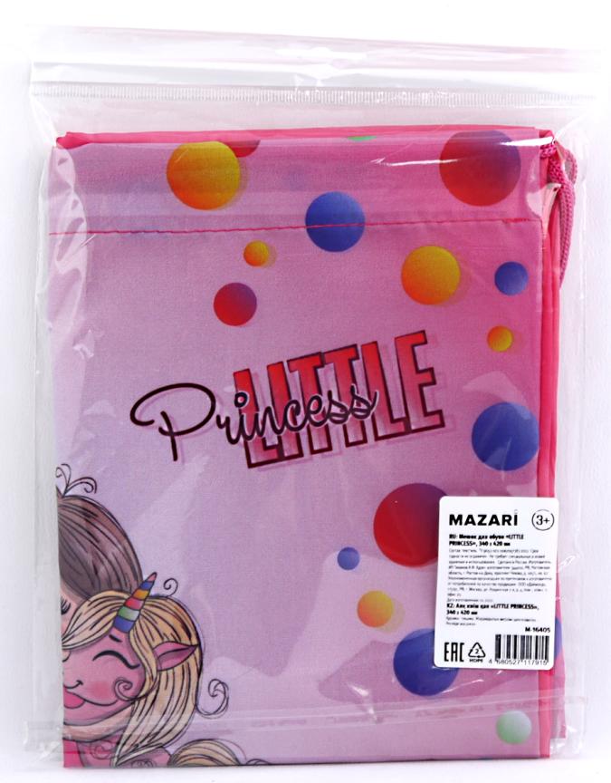 | Сумка-мешок для сменной обуви MAZARI 34*42см Little princess (п/упаковка с европодвесом)  Сумка-мешок для обуви предназначена для транспортировки сменной обуви на занятия по физкультуре, в секции, кружки, бассейн, спортзал; его можно использовать в качестве сумки для сменной одежды; как чехол для хранения обуви; можно брать с собой в путешествия. |