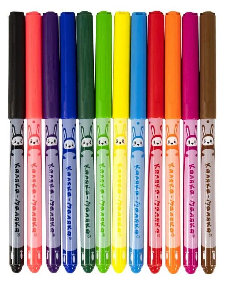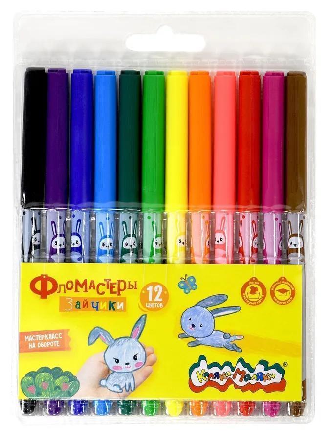 | Фломастеры Набор 12 цветов КАЛЯКА-МАЛЯКА Зайчики смываемые (вентилируемый колпачок) (п/упаковка с европодвесом)  Фломастеры Каляка-Маляка® одни из самых ярких, долговечных и безопасных фломастеров на рынке. Разработаны для детей в возрасте от 3 лет. Богатая палитра ярких сочных цветов позволит детям воплотить любую фантазию в рисунок. Весёлые Зайчики на корпусе. Толщина фломастера 8 мм. Диаметр пишущего наконечника 2 мм. В наборе 12 цветов. Фломастеры Каляка-Маляка® соответствуют самым высоким мировым стандартам качества и безопасности! - Обладают яркими, сочными цветами.