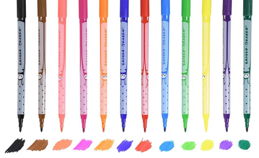 | | Фломастеры Набор 12 цветов КАЛЯКА-МАЛЯКА смываемые (вентилируемый колпачок) (п/упаковка с европодвесом)  Фломастеры Каляка-Маляка® одни из самых ярких, долговечных и безопасных фломастеров на рынке. Разработаны для детей в возрасте от 3 лет. Богатая палитра ярких сочных цветов позволит детям воплотить любую фантазию в рисунок. Выпускаются в удобном пластиковом блистере с европодвесом. Толщина фломастера 9,3 мм. Диаметр пишущего наконечника 2 мм. В наборе 12 цветов. Фломастеры Каляка-Маляка® соответствуют самым высоким мировым стандартам качества и безопасности! - Обладают яркими, сочными цветами. Богатая палитра оттенков.