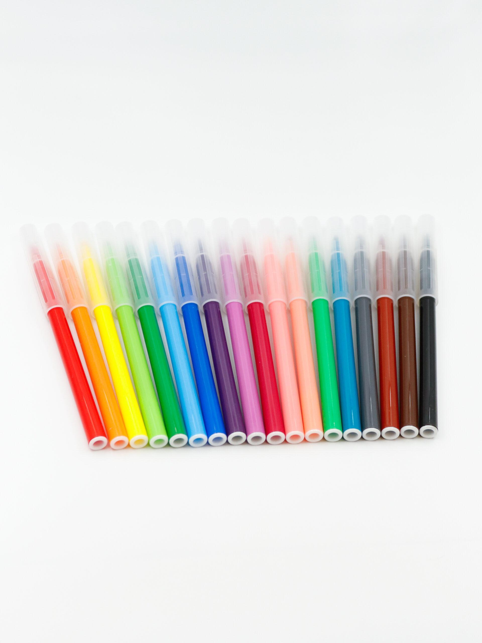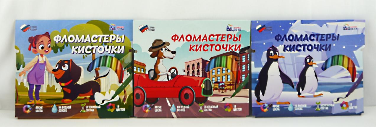 | | Фломастеры-кисти Набор 18 цветов РДК смываемые (вентилируемый колпачок) (картонная упаковка с европодвесом) Ассорти НФ00004333/ФК-18/2  Цветные фломастеры - прекрасный выбор для детского творчества. Занятие рисованием развивает мелкую моторику, стимулируя участки мозга, отвечающие за мышление, речь, зрительную и двигательную память, а также координацию. Рисование развивает пространственный интеллект, творческое мышление, фантазию и воображение малыша. В качестве результата своего труда ребенок получает реальный результат - рисунок, что учит его целеполаганию и формирует ориентацию на результативную деятельность. Прекрасно подходит для занятий рисованием в детском саду, в кружках, дома, в школе.; Рекомендовано детям от 3-х лет. |