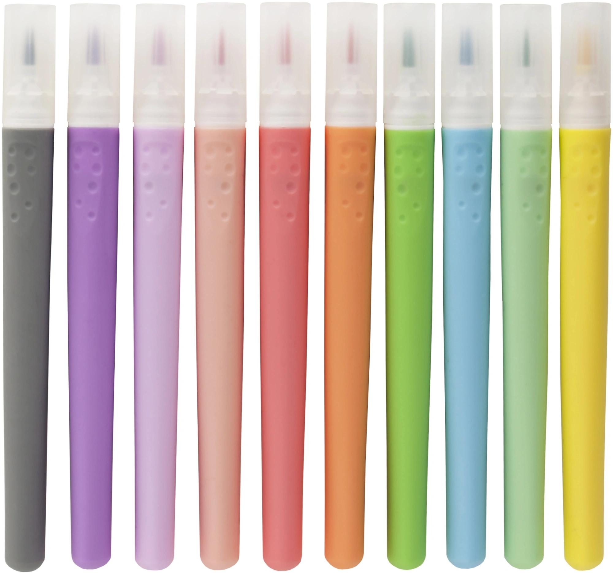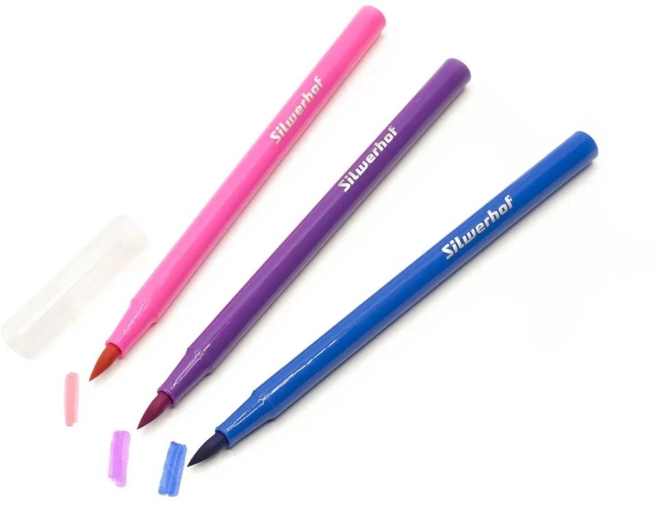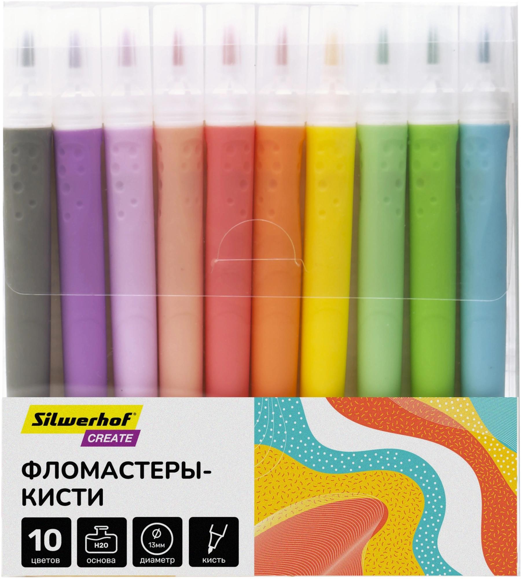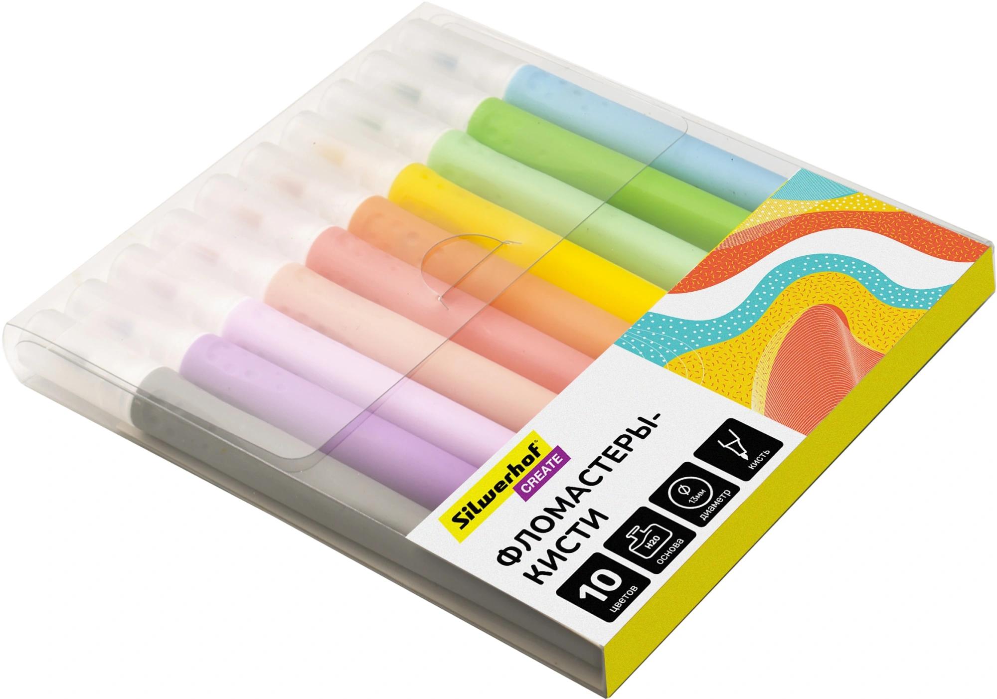 | | Фломастеры-кисти Набор 10 цветов SILWERHOF Create смываемые (вентилируемый колпачок) (п/упаковка с европодвесом)  Цветные фломастеры - прекрасный выбор для детского творчества. Занятие рисованием развивает мелкую моторику, стимулируя участки мозга, отвечающие за мышление, речь, зрительную и двигательную память, а также координацию. Рисование развивает пространственный интеллект, творческое мышление, фантазию и воображение малыша. В качестве результата своего труда ребенок получает реальный результат - рисунок, что учит его целеполаганию и формирует ориентацию на результативную деятельность. Прекрасно подходит для занятий рисованием в детском саду, в кружках, дома, в школе.; Рекомендовано детям от 3-х лет. |