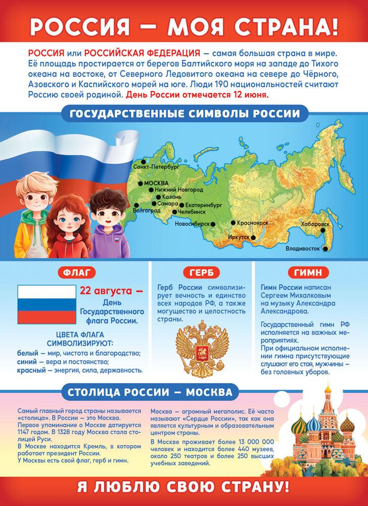 | | Плакат обучающий А4 (ФОНТАНКА) ПОМ-021 Россия-моя страна