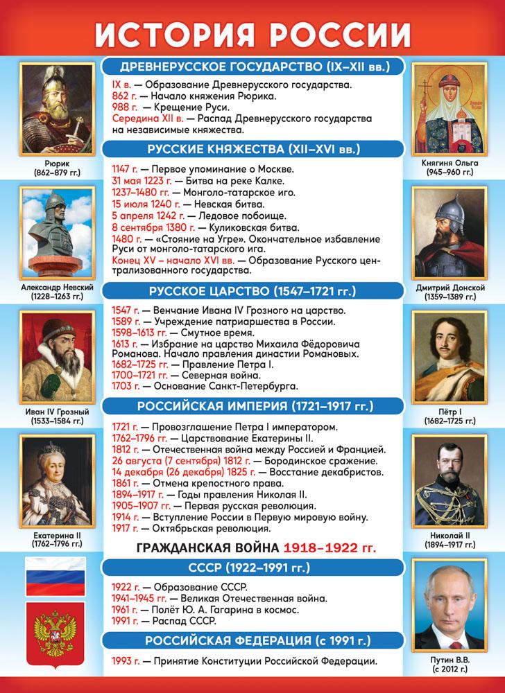 | Плакат обучающий А4 (ФОНТАНКА) ПОМ-023 История России