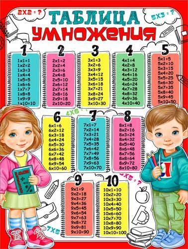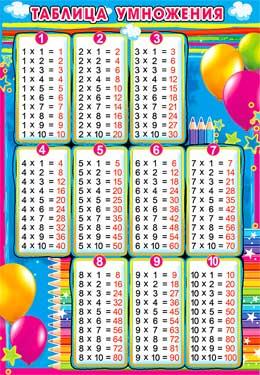 | Плакат обучающий Таблица умножения А2 АЙРИС  Плакат представляет собой красочно оформленную таблицу умножения. Пособие можно использовать со всеми существующими курсами математики для начальной школы, утвержденными Министерством образования РФ. |
