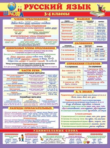 | | Плакат обучающий (Русский язык) А2 (МИР ОТКРЫТОК) 0-02-652А Русский язык 3-4 класс
