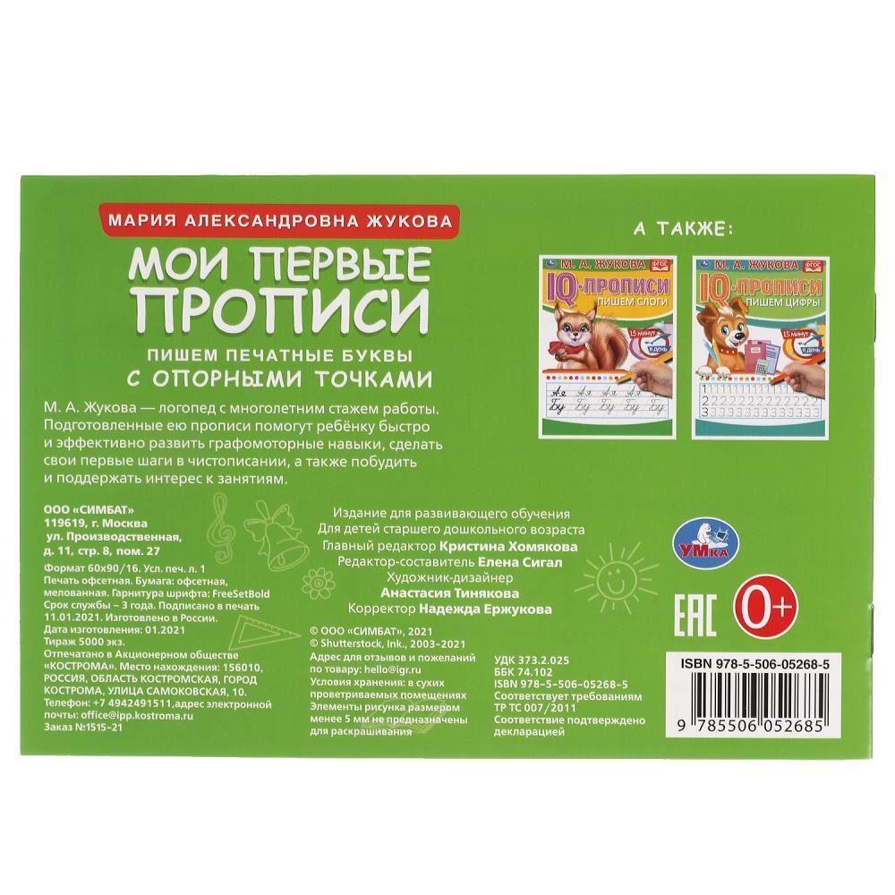 | Прописи УМКА А5 МоиПервПроп Пишем печатные буквы Жукова ( 16 страниц)Марка/Производитель: УМКА  Прописи с опорными точками «М. А. Жукова. Мои первые прописи. Пишем печатные буквы» ТМ «УМка» помогут ребёнку научиться писать красиво и правильно: - плавный переход от пунктирных линий к опорным точкам - учимся писать печатные буквы - соответствует ФГОС - повторяем азбуку - удобный формат Данные прописи разработаны Марией Александровной Жуковой - педагогом и логопедом с многолетним опытом работы. На страницах этой книжки ребёнка ожидают занимательные упражнения по её авторской методике, направленные на тренировку написания печатных букв по опорным точкам. Благодаря компактным размерам прописи удобно брать с собой даже в поездки. Занятия с прописями ТМ «УМка» помогают подготовить руку к письму и способствуют развитию: - мелкой моторики рук - памяти - внимания - творческого мышления - усидчивости Объём: 16 стр. Формат: 205 х 140 мм (А5). Материал: офсетная бумага. Рекомендовано детям старшего дошкольного возраста. |