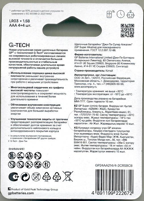 | Элемент питания (батарейка ) LR03 GP Super BL-8  Габариты 1 батарейки 4,5*1 см |