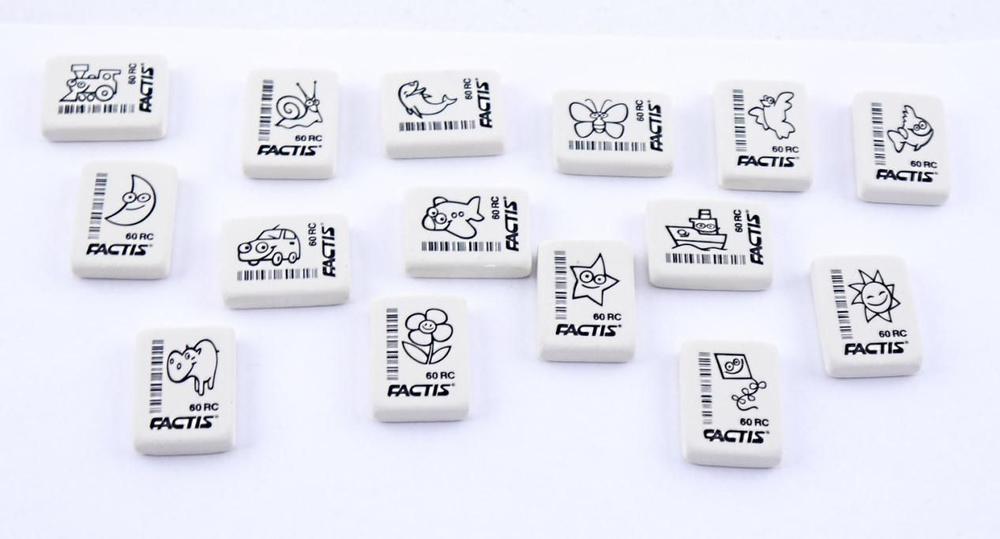 | Ластик FACTIS 60RC (синтетический каучук) (прямоугольной формы) 32*24* 7мм белый Ассорти  Эластичный качественный, гибкий, ластик из синтетического каучука. Прямоугольная форма, модель 60RC. Маленький ластик. |